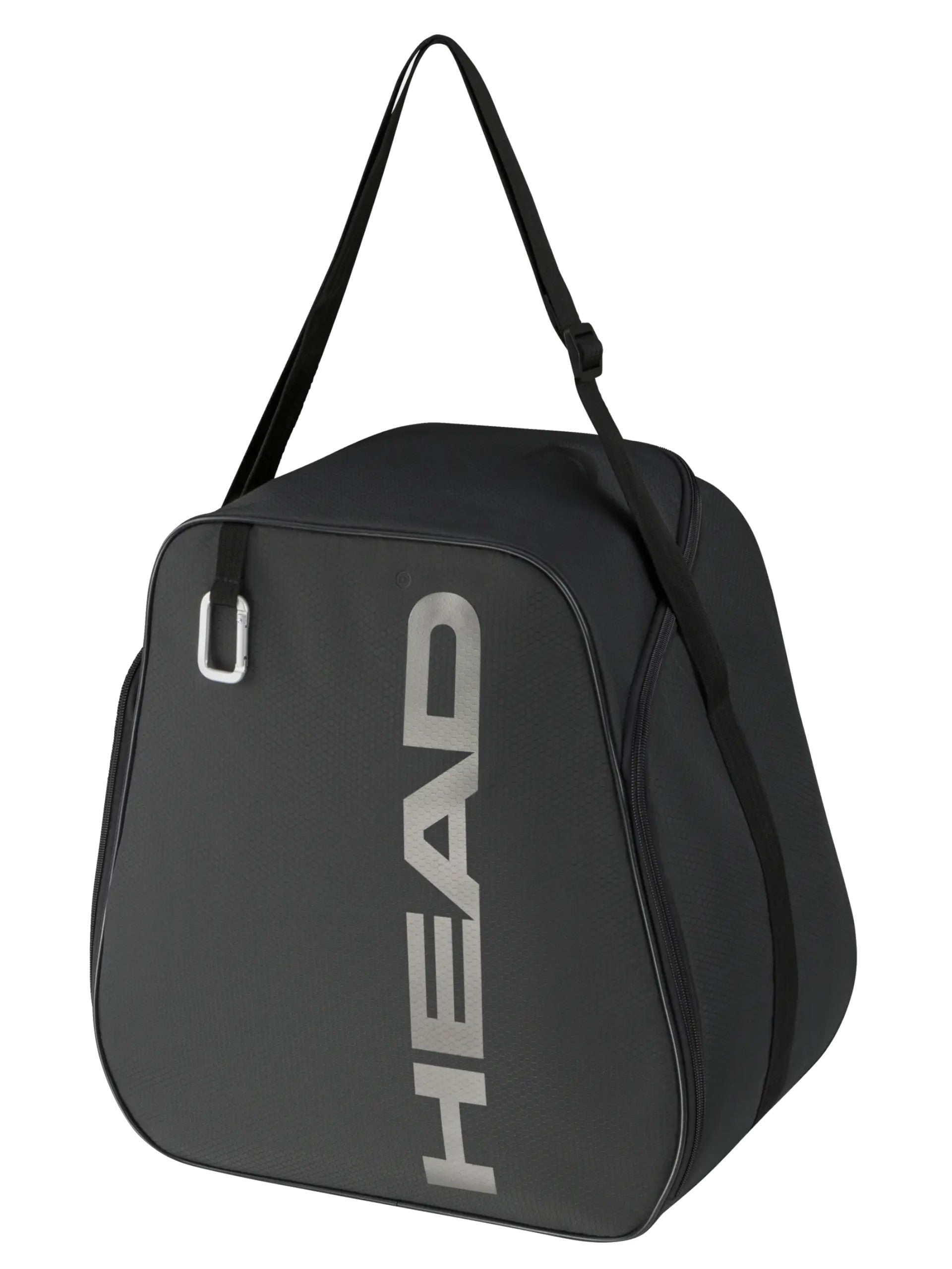 Porta scarponi nero Head Bootbag. La borsa Bootbag presenta un largo comparto per riporre scarponi e casco quando viaggi. Lo spallaccio rende il trasporto ancora più agevole e il moschettone consentedi agganciare i tuoi accessori all'esterno.