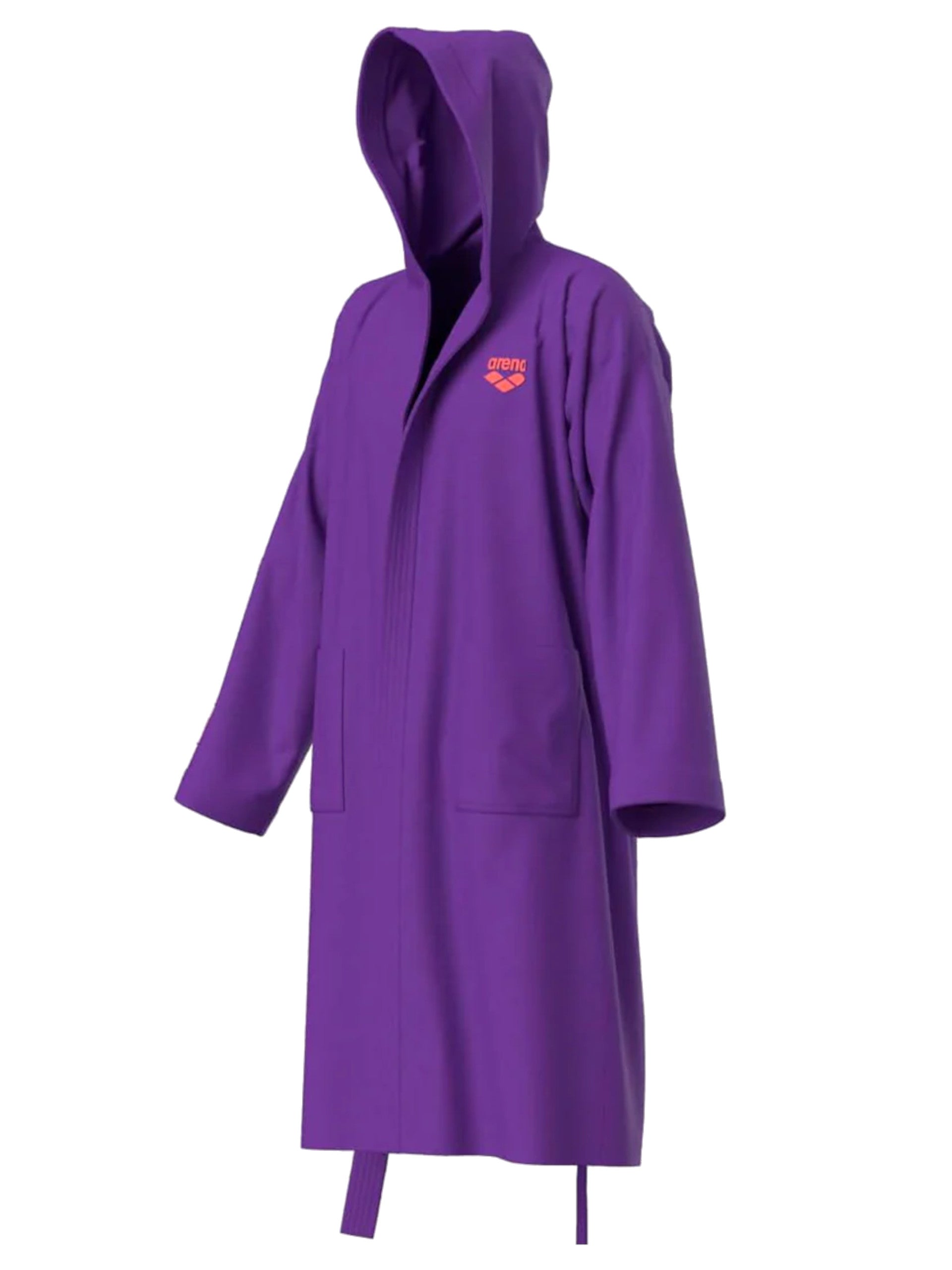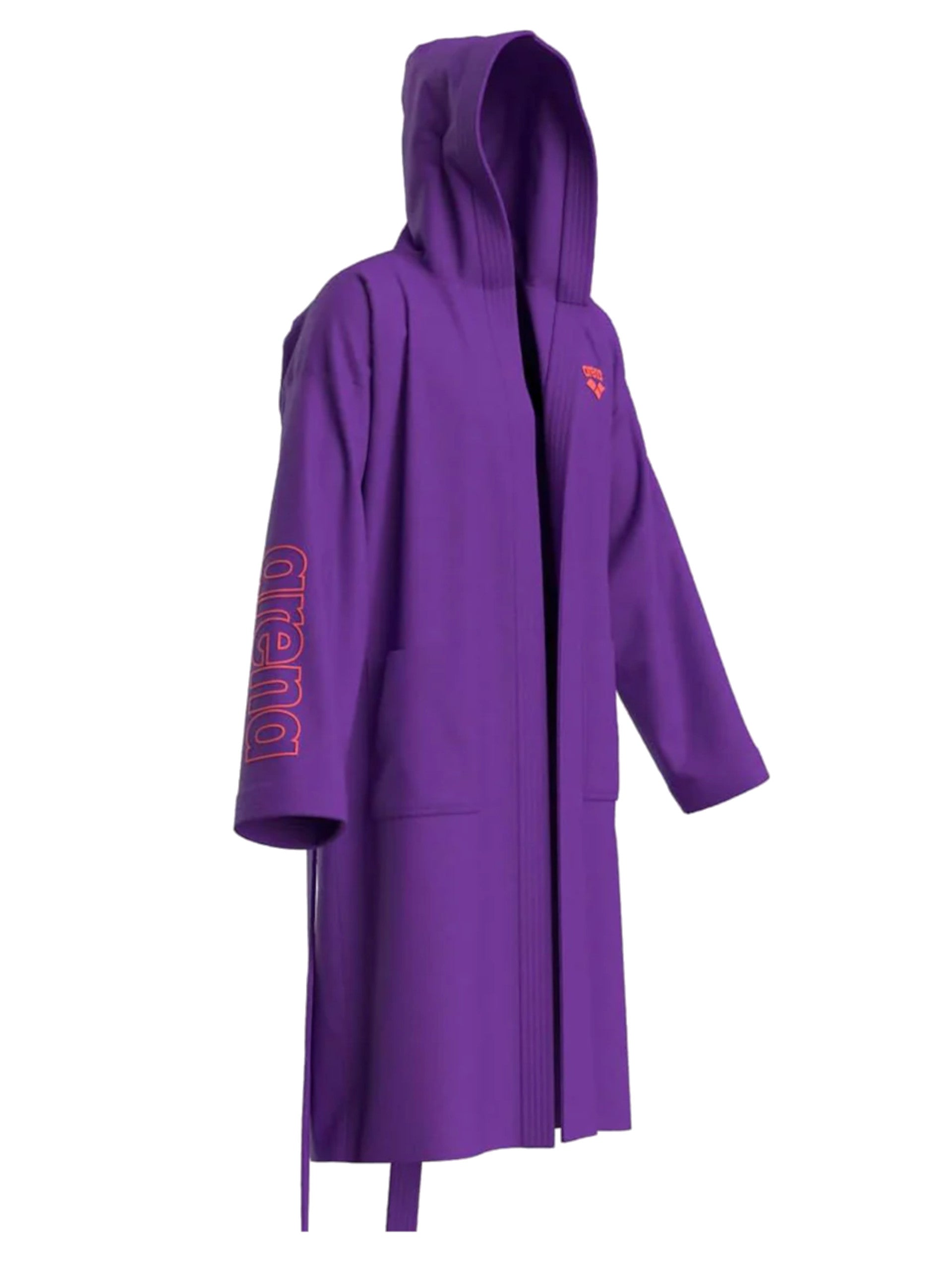 Accappatoio Arena Piscina viola Zeppelin 009019. Accappatoio nuoto con comode tasche laterali e cintura in vita che risulta essere poco ingombrante. Caratterizzato da maxi logo Arena ricamato.
