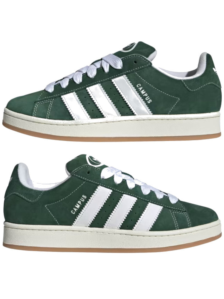 Adidas Campus 00s verdi H034. Queste scarpe Adidas Campus hanno la tomaia in nubuk, la suola in gomma rinforzata e la soletta removibile. Sul davanti di queste Adidas Campus troviamo la classica chiusura a lacci, le iconiche 3Stripes ambo i lati a contrasto colore e il lettering 'Campus'.