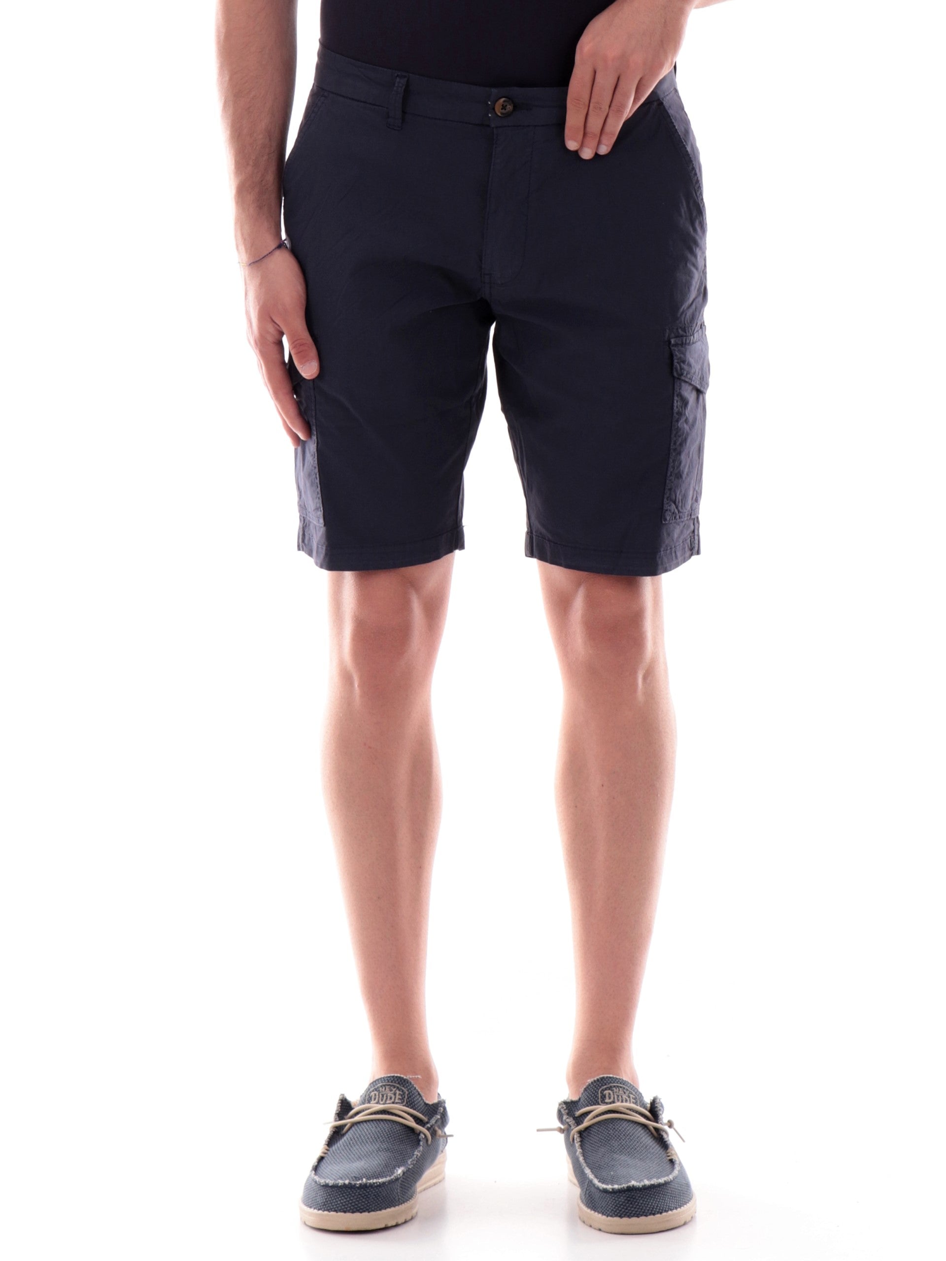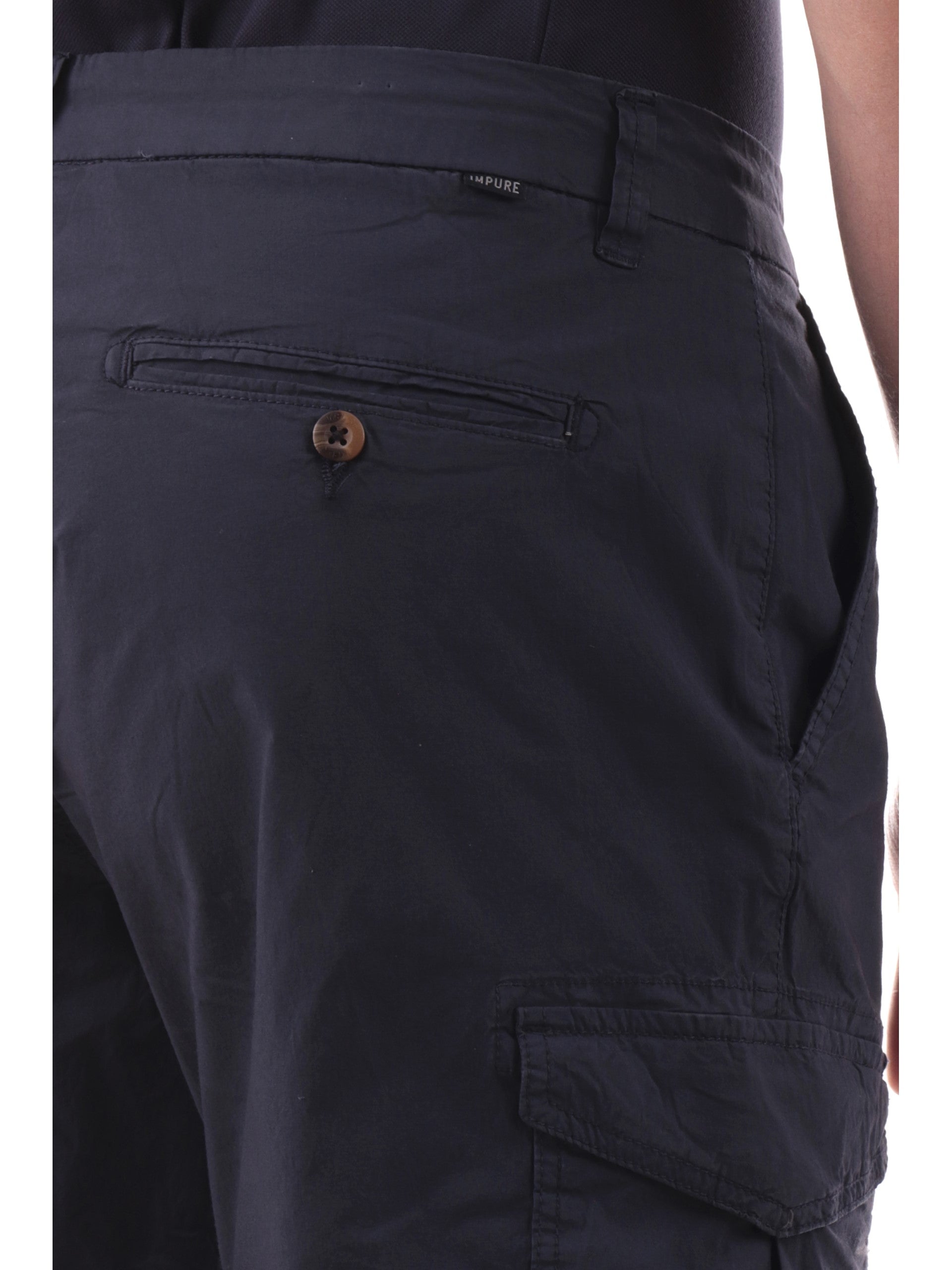 Bermuda cargo Impure blu da uomo in cotone SPIKEPOP. Questi pantaloncini cargo Impure blu hanno la chiusura con bottone più zip, due tasche laterali aperte con taglio obliquo, due tasche posteriori afilo e due tasconi cargo.