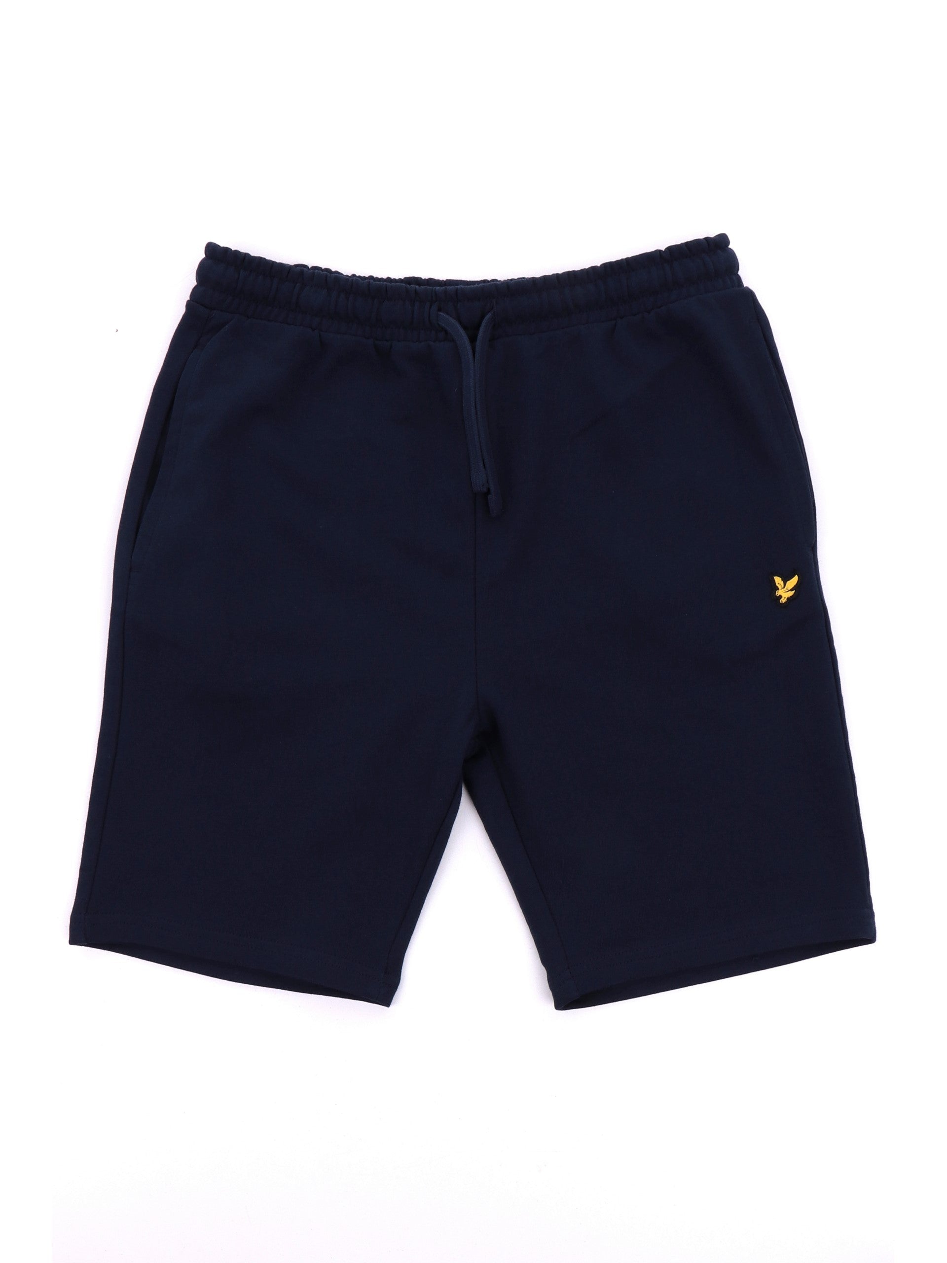Bermuda Lyle Scott da bambino realizzato in cotone elasticizzato. Pantalone corto al ginocchio in tinta unita, presenta un elastico in vita con laccetti per la regolazione, tasche laterali a filo elogo dorato Lyle and Scott applicato sulla gamba sinistra.