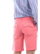 Bermuda Murphy & Nye rosa da uomo, modello New Coastal P50202, realizzati in morbido cotone. Questi shorts Murphy & Nye rosa hanno la chiusura con bottone logato e zip, due tasche laterali aperte, lapredisposizione per indossare la cintura, il fondo regolare e due tasche posteriori con patta a bottone.