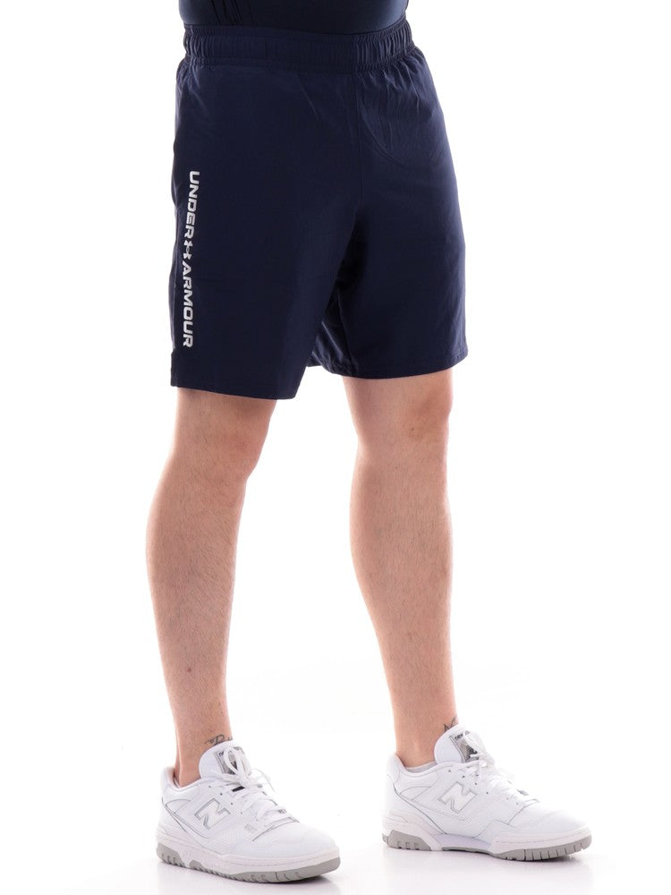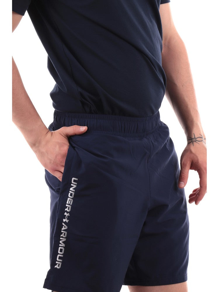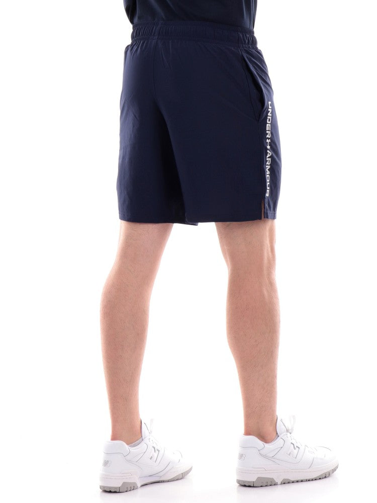 Bermuda Under Armour blu da uomo Woven 13833560, realizzati in tessuto tecnico traspirante. Questi pantaloncini Under Armour blu hanno la banda elastica sul punto vita regolabile con laccetti, due tasche laterali aperte e il logo del brand a contrasto colore.
