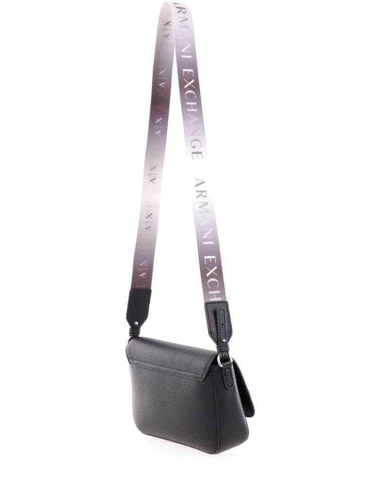 Borsa Armani Exchange nera da donna 942912CC783. Questa borsa AX nera è una comodissima crossbody con effetto martellato. Sulla patta è presente il logo a contrasto, chiusura a clip, ed è dotata di una tracolla removibile effetto regradè. Internamente una tasca multiuso.