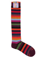 Calzini Gallo uomo con fantasia a righe multicolor su fondo marrone. Questi calzini uomo Gallo marrone sono realizzati in morbido cotone di alta qualità. I calzini lunghi uomo Gallo sono il dettagliodi stile ricercato che impreziosirà i tuoi outfit.