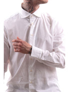 Camicia Bastoncino bianca da uomo 2600, realizzata in 100% puro cotone. Questa camicia Bastoncino bianca ha il colletto alla francese, la chiusura a bottoni centrale, le maniche lunghe con polsini e la trama con puntini tono su tono.
