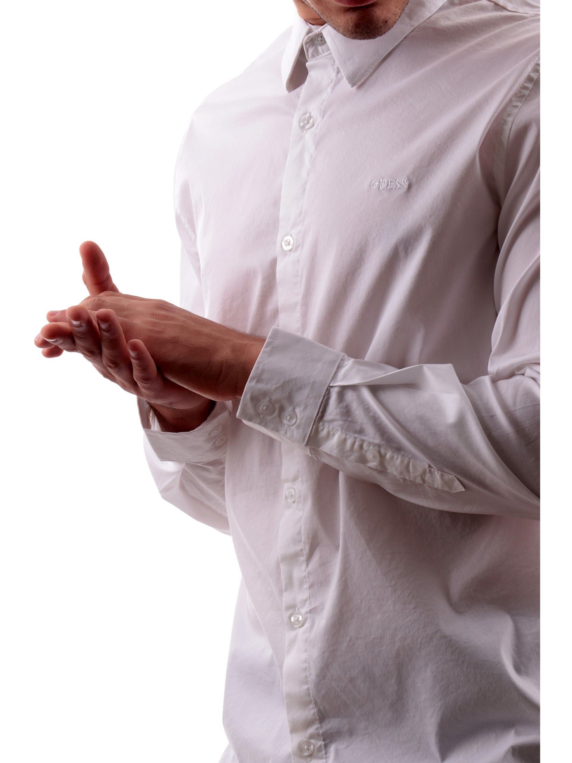 Camicia uomo Guess bianca a tinta unita con scritta Guess ricamata sul davanti lato sinistro. Questa camicia Guess da uomo dallo stile minimalista, semplice ma ricercata è ideale per tutte lestagioni, tutti gli outfit e tutti gli stili. Questa camicia Guess bianca è un classico intramontabile nell'armadio di ogni uomo, la si può abbinare con facilità e donerà sempre un tocco di eleganza e raffinatezza.