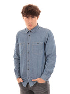 Camicia Roy Roger's blu da uomo dallo stile street. Dal fondo arrotondato e dalla chiusura con bottone, questa camicia maniche lunghe dall'effetto slavato presenta due tasche anteriori sul petto ed il collo a punte libere. Questa camicia di jeans è l'ideale per ogni uomo casual dalla profonda anima urban.