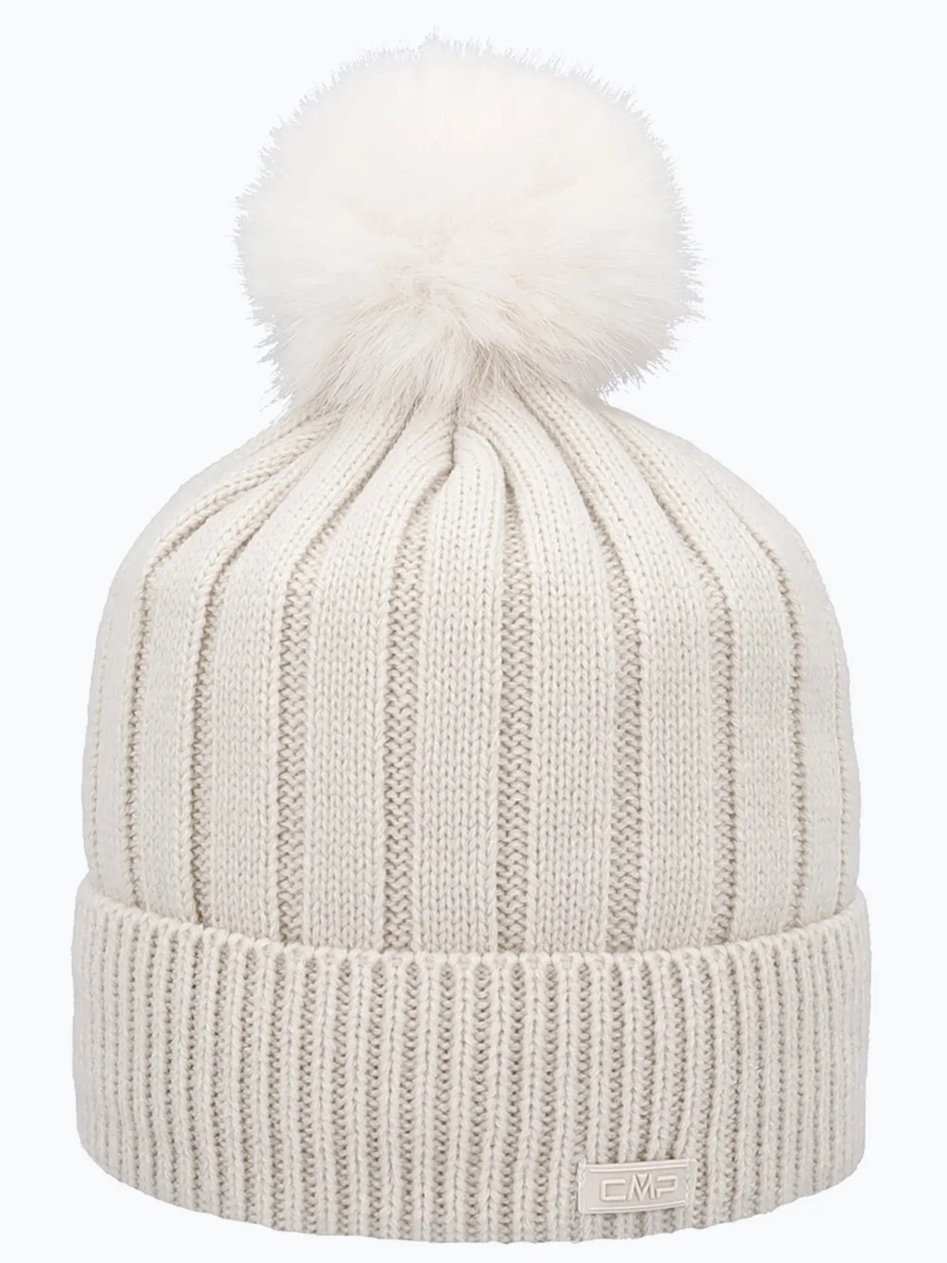 Cappello CMP bianco da donna con pompon. Questo cappello CMP con lavorazione a maglia è realizzato dal rivestimento interno in pile per garantire una piacevole sensazione di calore durante le fredde giornate invernali. Il pompon completa il look invernale