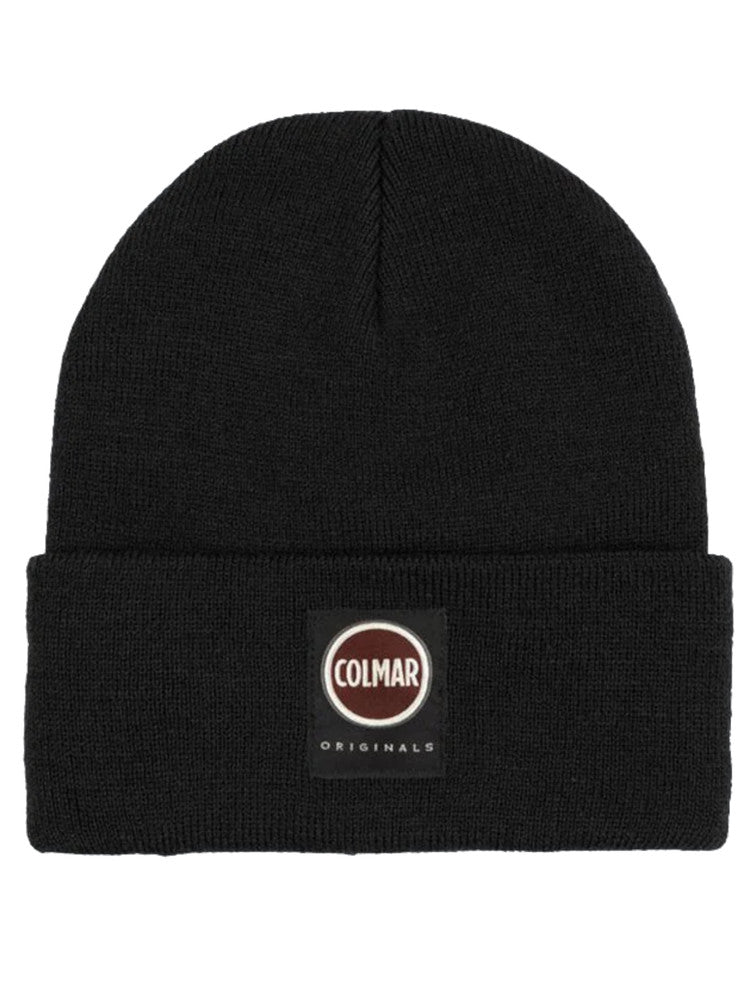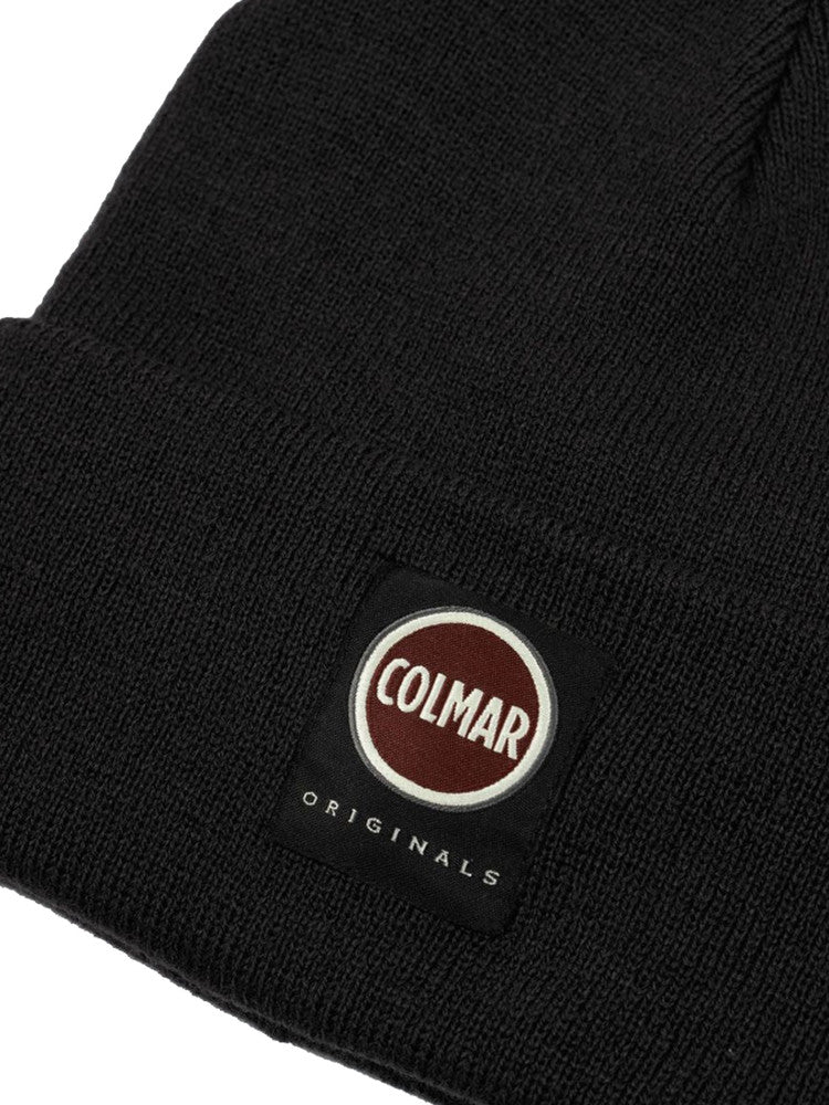 Cappello Colmar nero kids 53494QN, realizzato in morbido e caldo tessuto a tinta unita. Questo berretto Colmar nero da bambino e bambina ha il risvolto sul davanti e il patch del brand applicato sul davanti a contrasto colore.