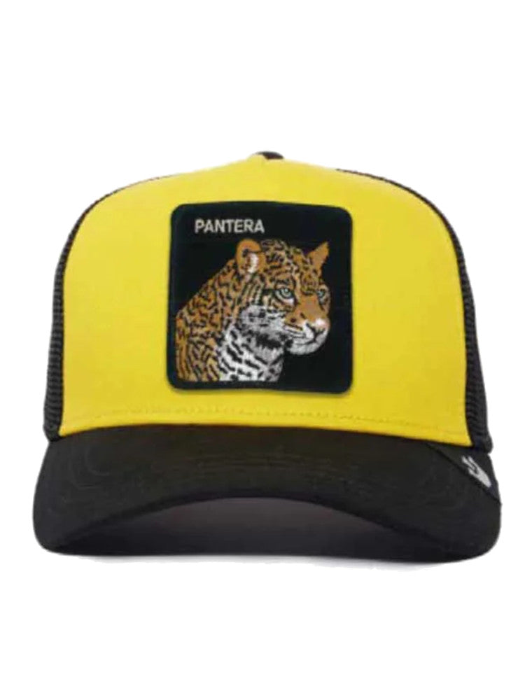 Cappello Goorin Bros giallo e nero Baseball Cap Pantera 1011447. Questo berretto Goorin Bros giallo ha il patch Pantera cucito sul davanti, il patch logo applicato sulla visiera lato sinistro, la retina traspirante e la regolazione con laccetto.
