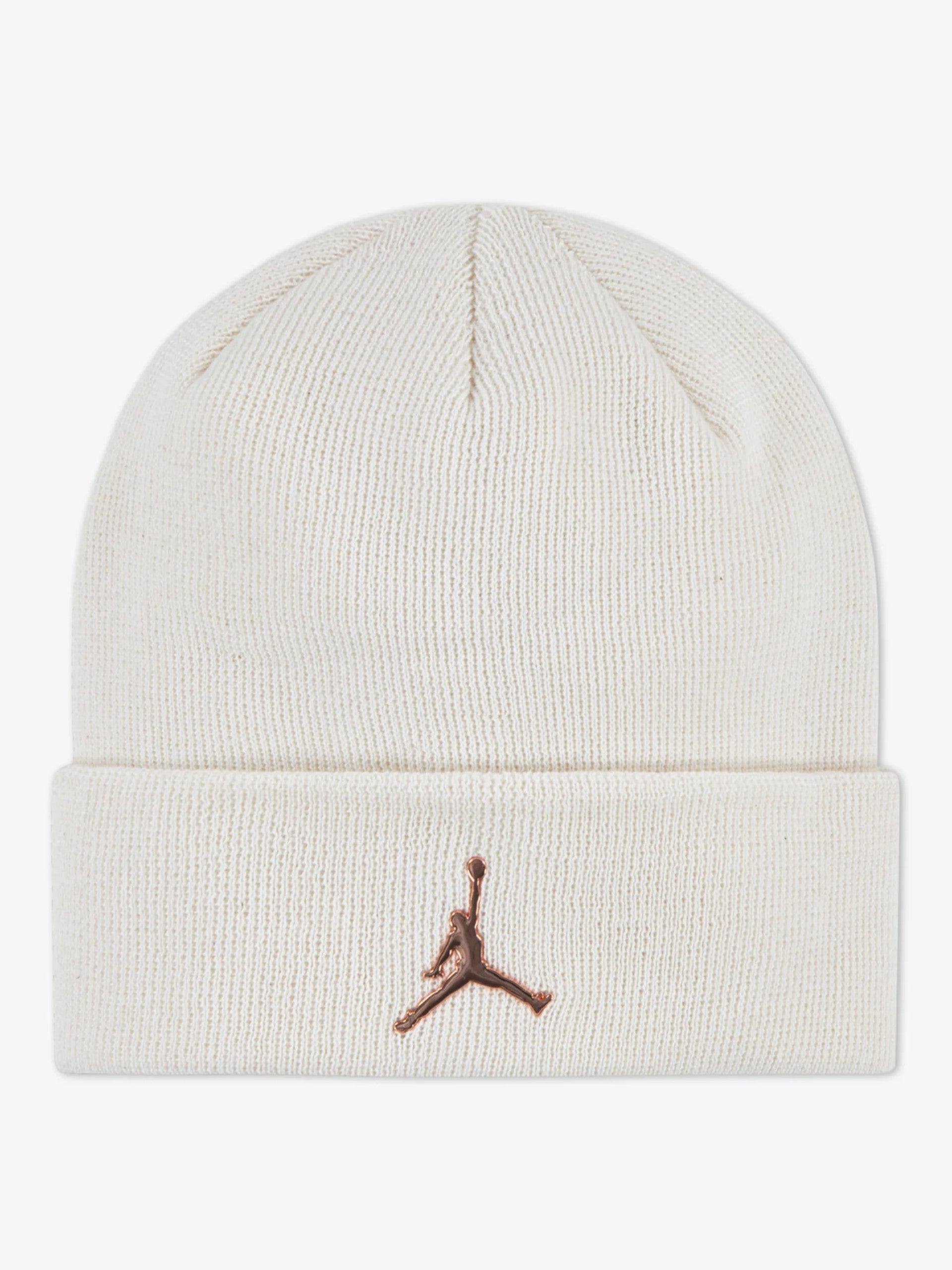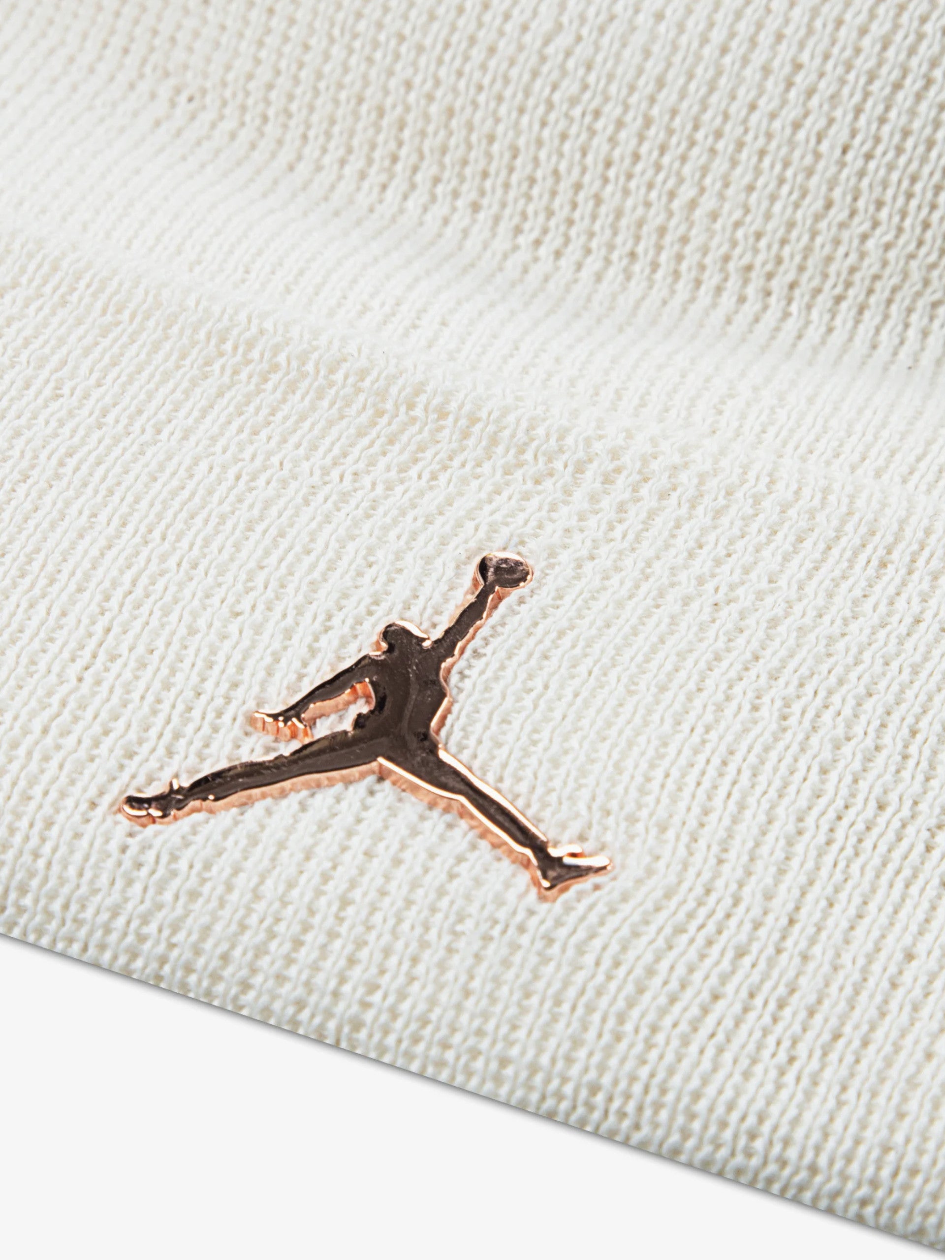 Cappello Jordan bianco con logo Beanie Cuffed. Questo cappello Jordan bianco realizzato a costine caldo, è caratterizzato con il risvolto e il logo del brand applicato sul davanti