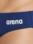 Costume Arena blu da uomo Team Swim Briefs Solid, realizzato in materiale tecnico in grado di asciugarsi in pochissimi minuti. Questo costume slip Arena blu ha la banda elastica sul punto vita regolabile con laccetti e il logo del brand sul davanti a contrasto colore.