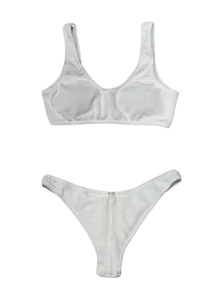 Costume Effek da donna bianco. Il bikini Effek bianco da donna ha il top con coppette estraibili. Lo slip americano è sgambato e molto seducente.