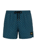 Costume mare Effek blu fiori da uomo 2070, realizzati in tessuto in grado di asciugarsi in pochissimi minuti. Questo costume Effek blu ha la banda elastica sul punto vita regolabile con laccetti, duetasche laterali aperte, una tasca posteriore a filo, il patch gommato del brand sul davanti a contrasto colore e la fantasia con fiori all over.