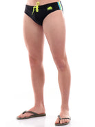 Costume slip Sundek nero da Uomo. Questo costume Sundek è caratterizzato dall'iconico arcobaleno del brand. Cuciture a contrasto e tessuto nylon