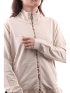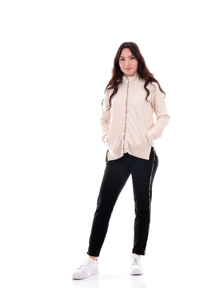 Felpa Freddy beige da donna S3WSLS9. Questa felpa Freddy beige ha la chiusura full zip, due tasche laterali aperte, polsini elasticizzati ed il fondo asimmetrico con spacchi laterali e l'inserto a fantasia floreale.