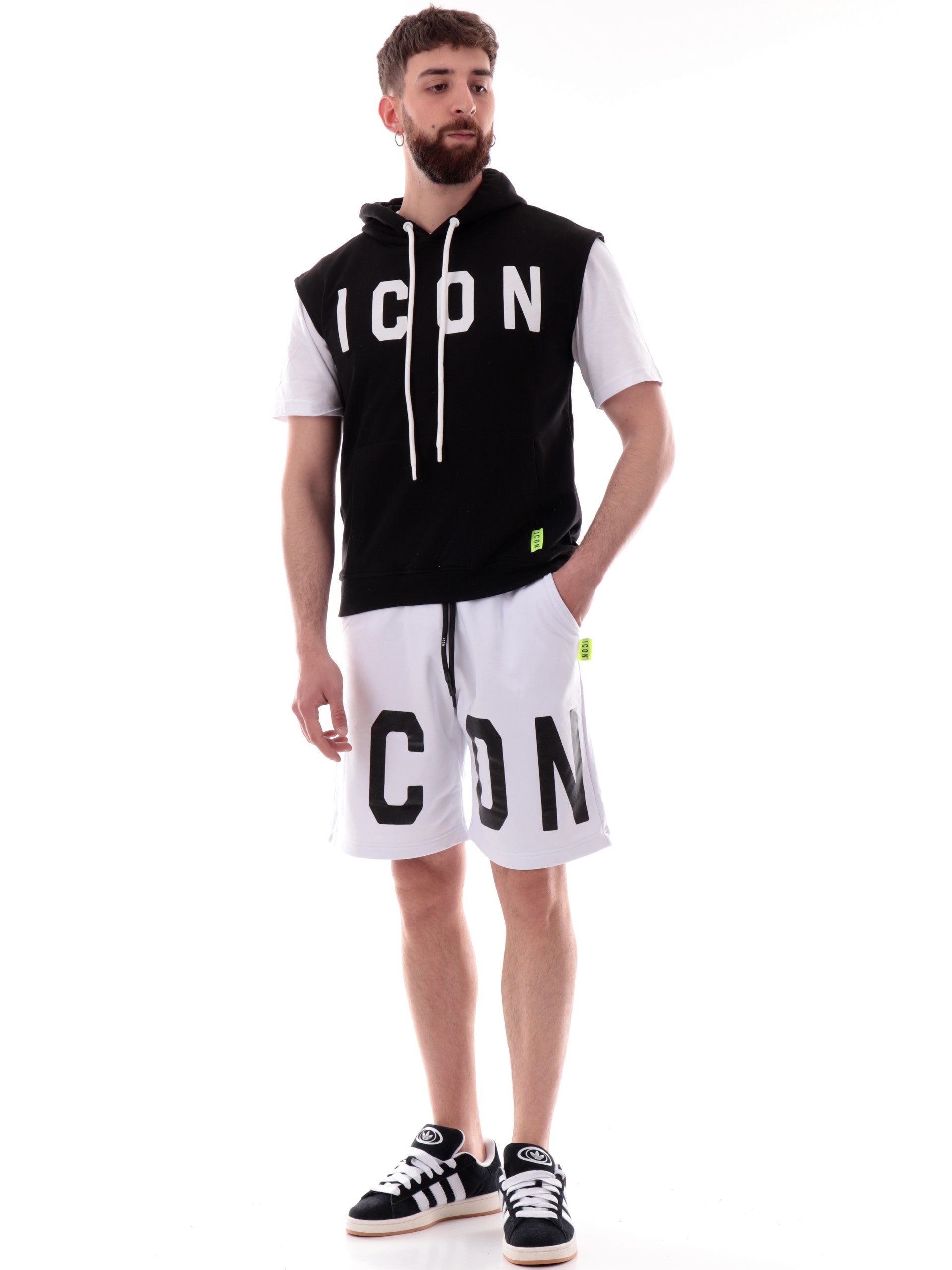 Felpa smanicata Icon nera gilet con cappuccio Logo bianco ICUS2S5F020-NERO