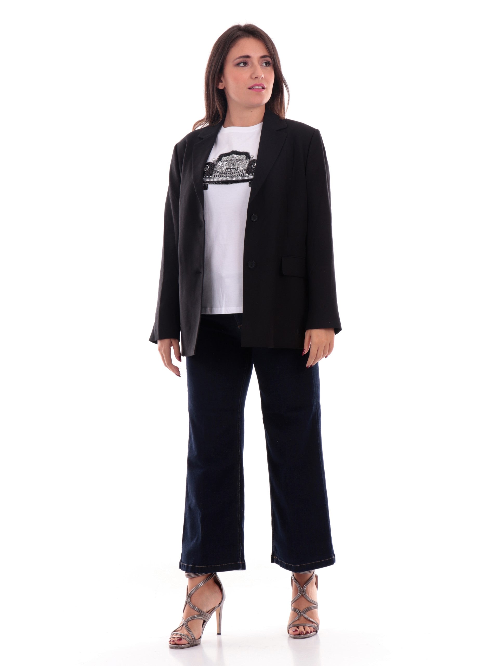 Giacca over Calvin Klein nera da donna elegante J20J223926, realizzata in viscosa. Questa giacca elegante Calvin Klein nera ha la chiusura con bottoni centrale, due taschini frontali con patta e polsini con bottoni decorativi.