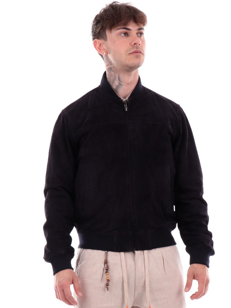 Giubbino Heritage in pelle blu da uomo 004CM