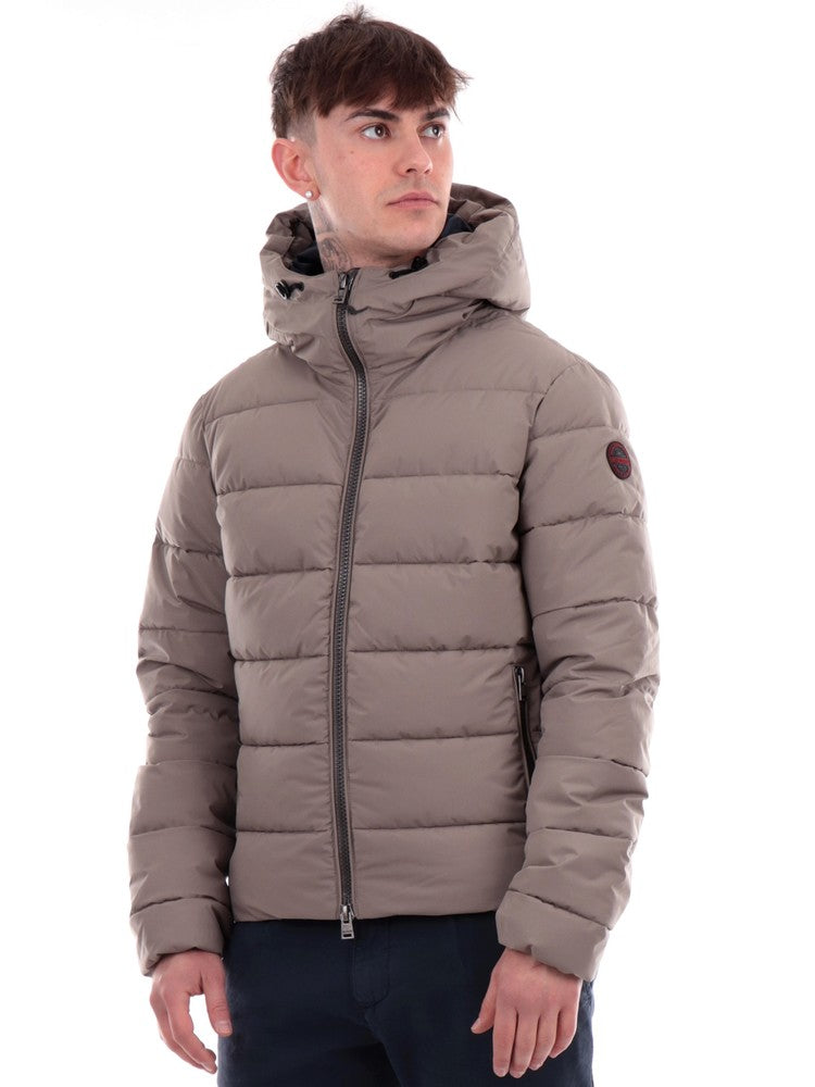 Giubbino Museum grigio da uomo Justin JA05PL966, realizzato in morbido tessuto a tinta unita. Questo giubbotto Musuem grigio ha il cappuccio fisso regolabile con coulisse, la chiusura full zip centrale, due tasche laterali con zip e il patch del brand sulla manica sinistra a contrasto colore.