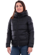 Giubbino Museum nero da donna Arlette JA38PL986, realizzato in morbido tessuto a tinta unita. Questo giubbino Museum nero ha il cappuccio fisso, la chiusura full zip centrale con doppio cursore logato, due tasche laterali con zip e il patch del brand applicato sulla manica sinistra a contrasto colore.