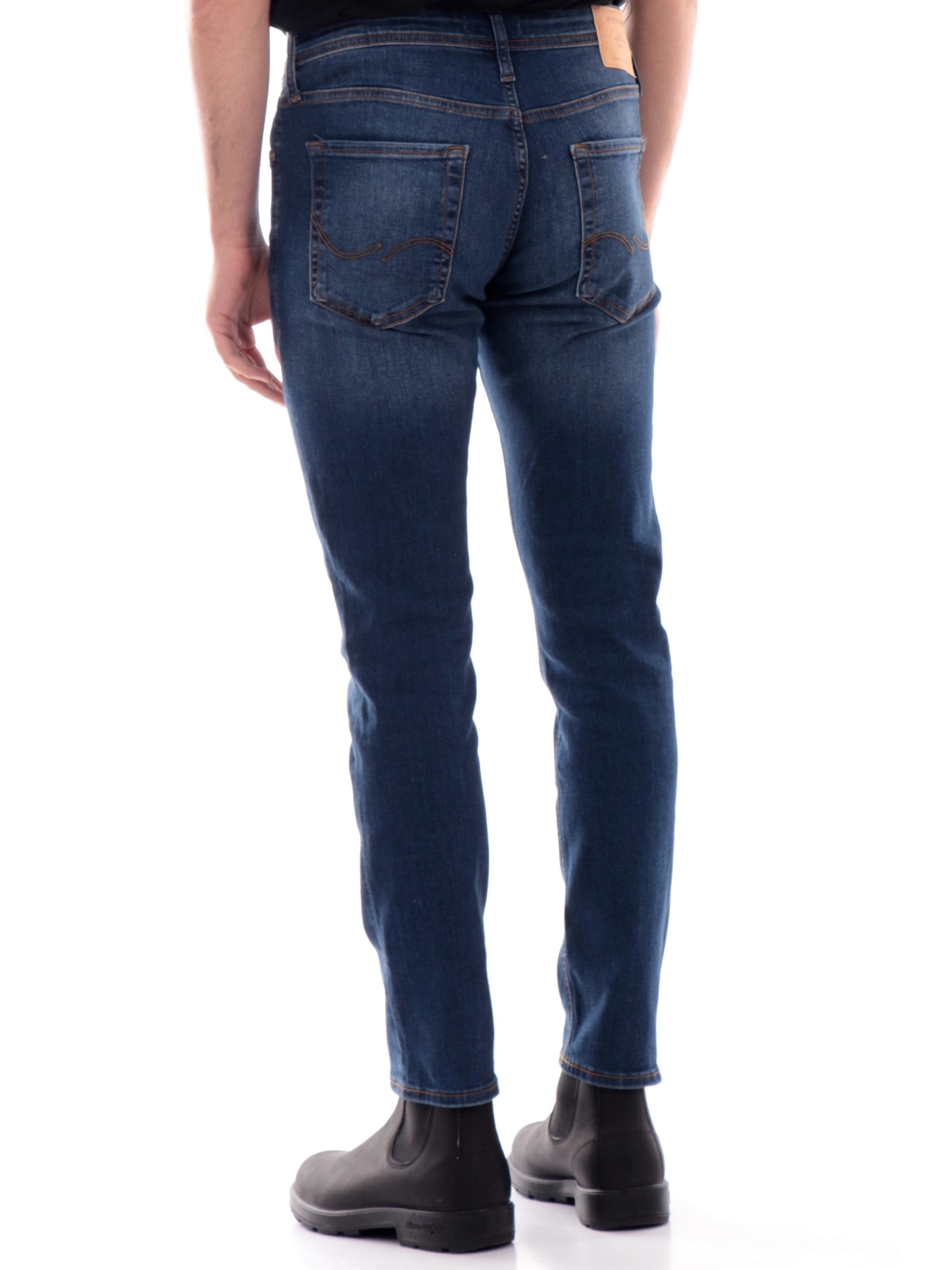 Jeans Jack&Jones realizzato in denim stretch blu scuro; pantalone Jack&Jones modello 5 tasche garantisce una perfetta vestibilità ed ha vita media e gamba slim; completano le caratteristiche di questo jeans 12152347 da uomo il lavaggio stone wash leggero e le graffiature effetto used, per uno stile urban e dinamico.