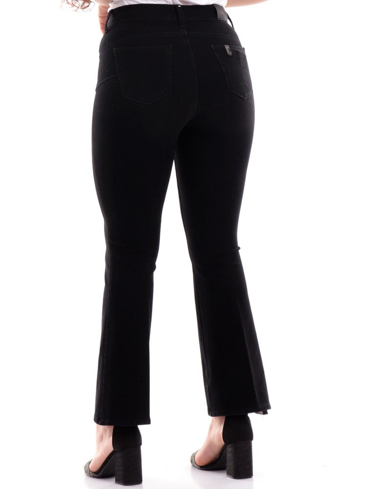 Jeans Liu Jo neri da donna Princess UA4040D48868, realizzati in morbido tessuto. Questi jeans Liu Jo neri hanno la chiusura con bottone logato più zip, due tasche laterali aperte, due tasche posteriori a filo e il fondo a zampa.