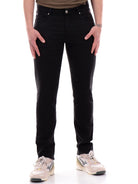 Jeans Roy Rogers neri da uomo 517 Plain Drill RU089P0370127, realizzati in morbido cotone. Questi pantaloni jeans Roy Roger's neri hanno la chiusura con bottone logato più zip, due tasche laterali aperte, due tasche posteriori a filo e il fondo regolare.