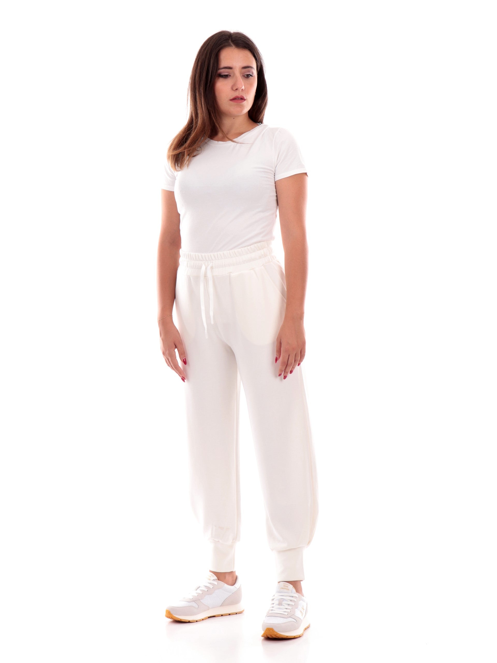 La nostra modella è alta 1,74 mt e indossa maglie taglia S e pantaloni taglia 42.
