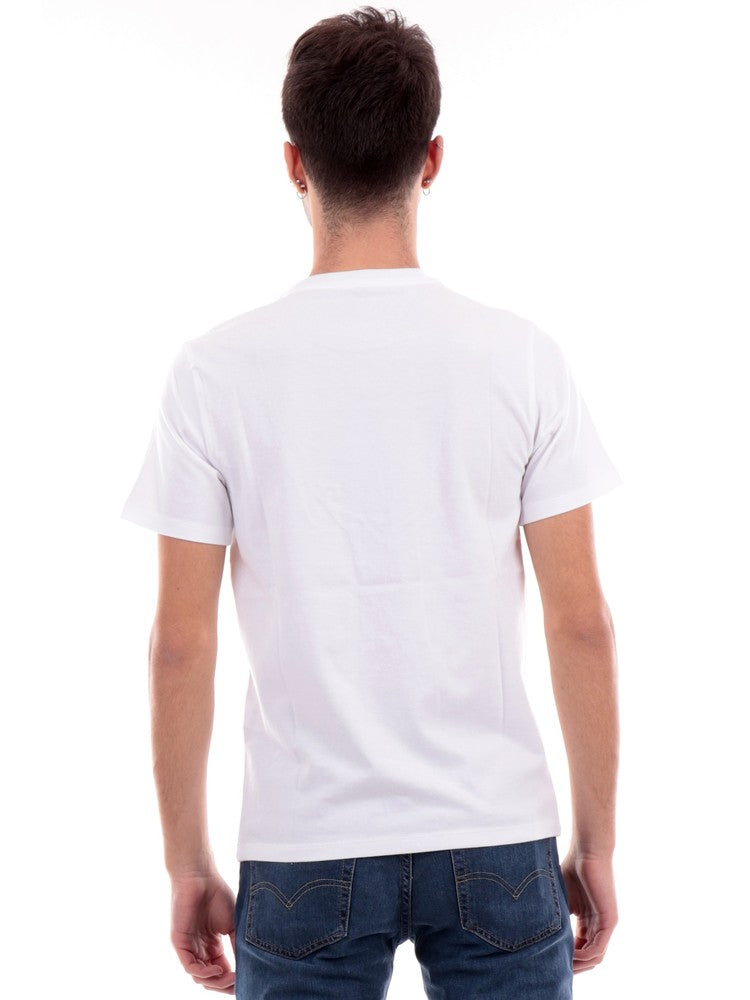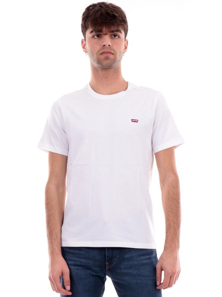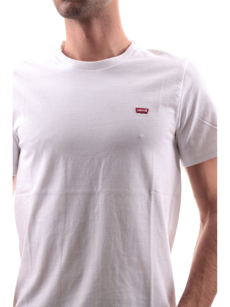 Maglia Levi's bianca da uomo a tinta unita. Questa T-Shirt Levi's ha le maniche corte, il girocollo, il patch del brand cucito sul cuore a contrasto colore, polsini elasticizzati e fondo regolare. Lacomposizione in 100% cotone rende questa maglietta morbida, leggera e comoda da indossare.