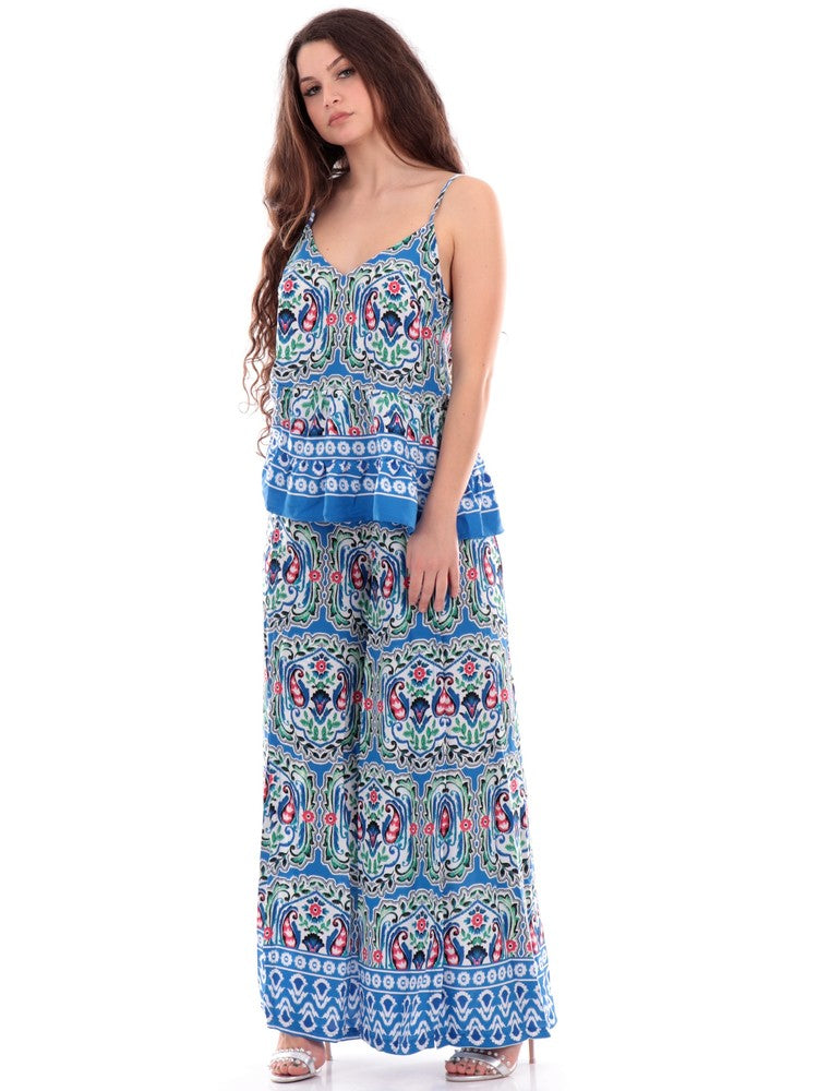 Maglia Molly Bracken blu da donna LA1531CE, realizzata in tessuto leggero. Questa maglia Molly Bracken a base larga presenta fantasie floreali.