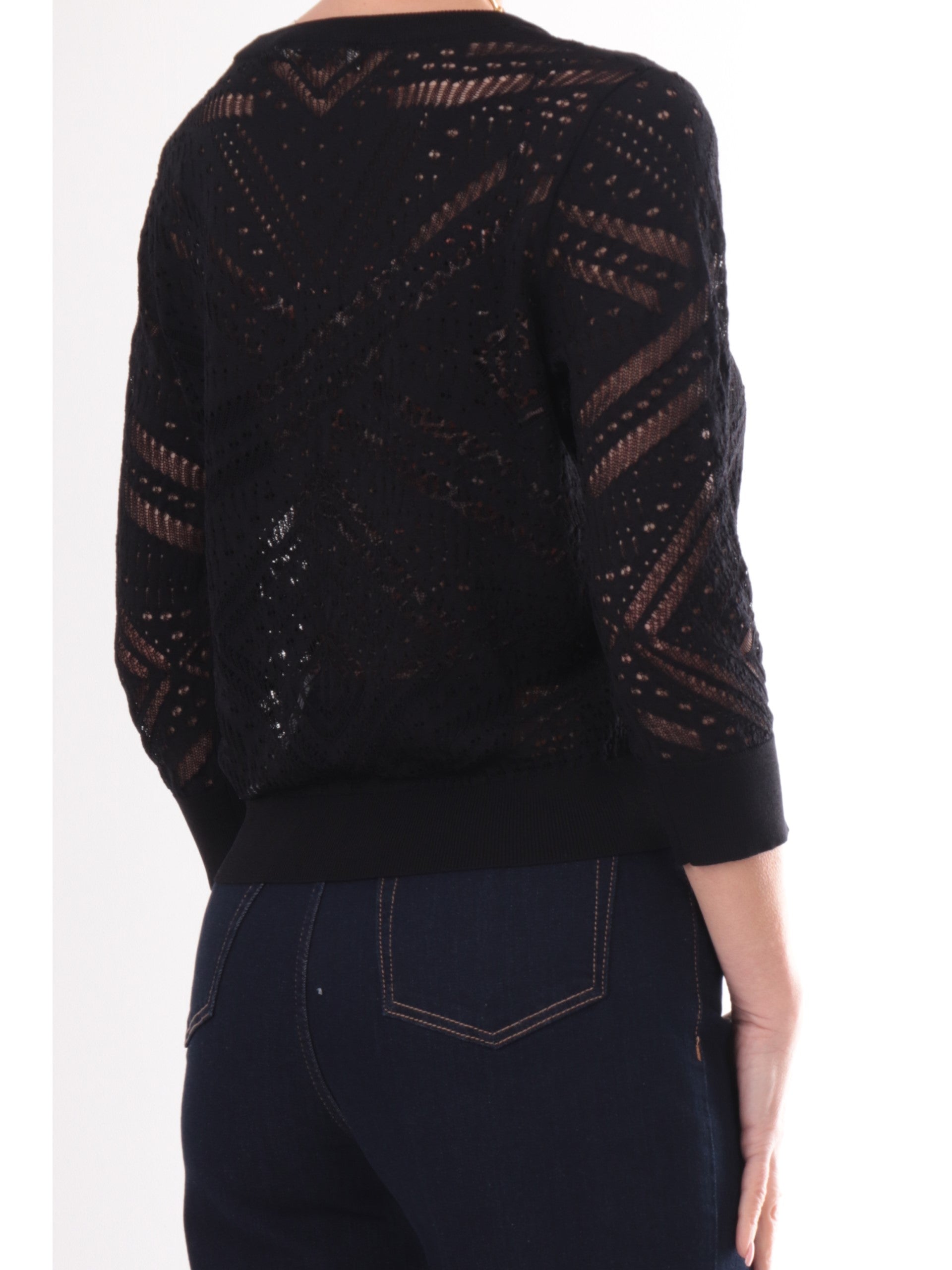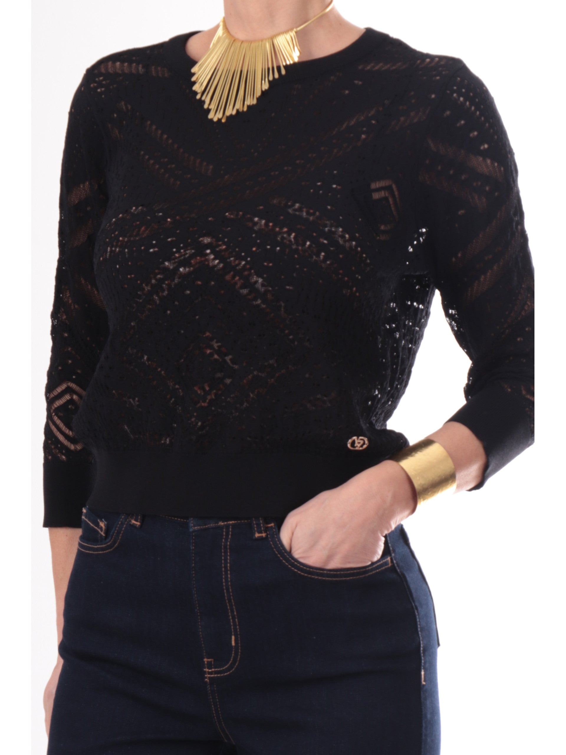 Maglia nera da donna Yes Zee traforata M437BR000801