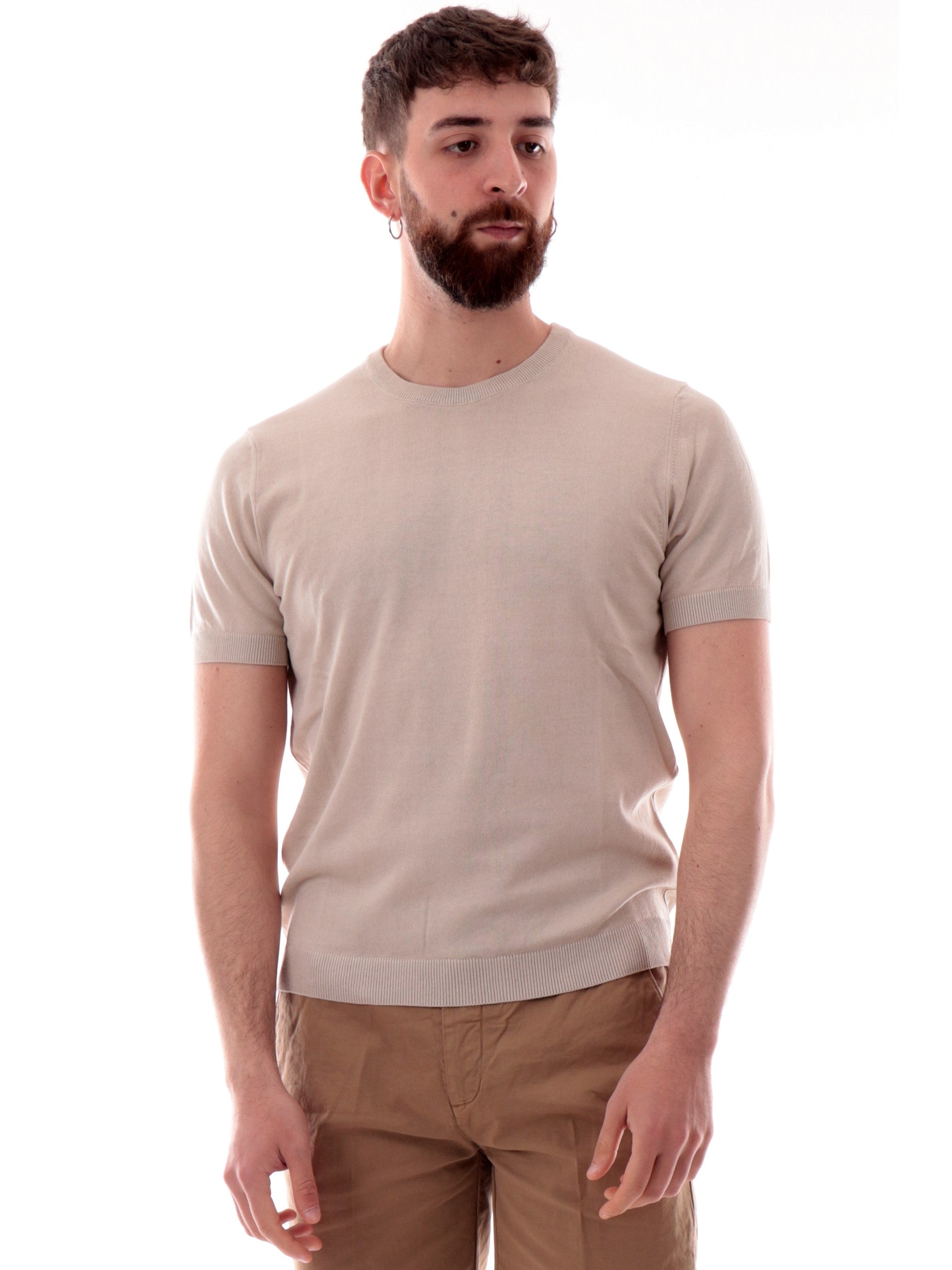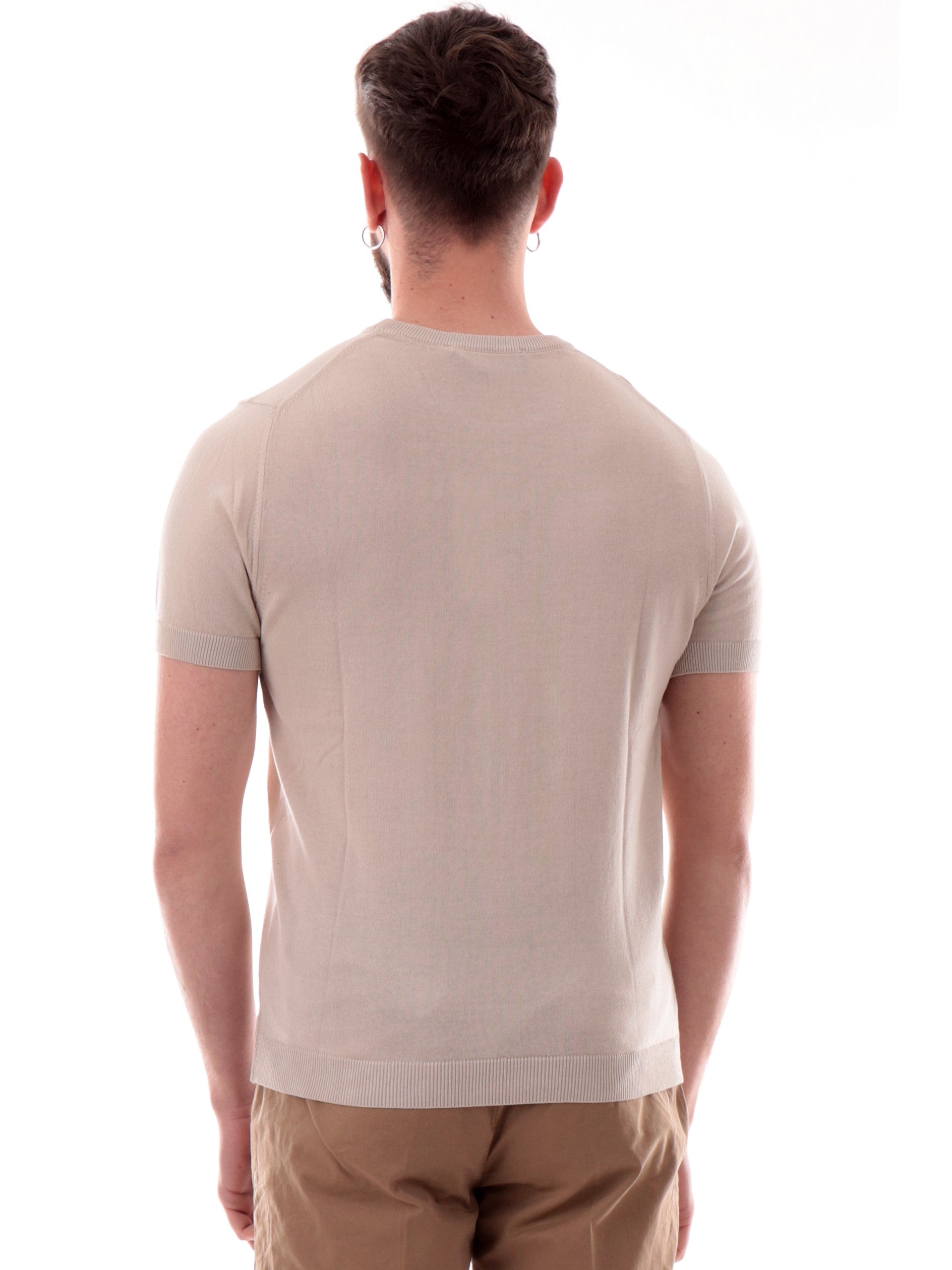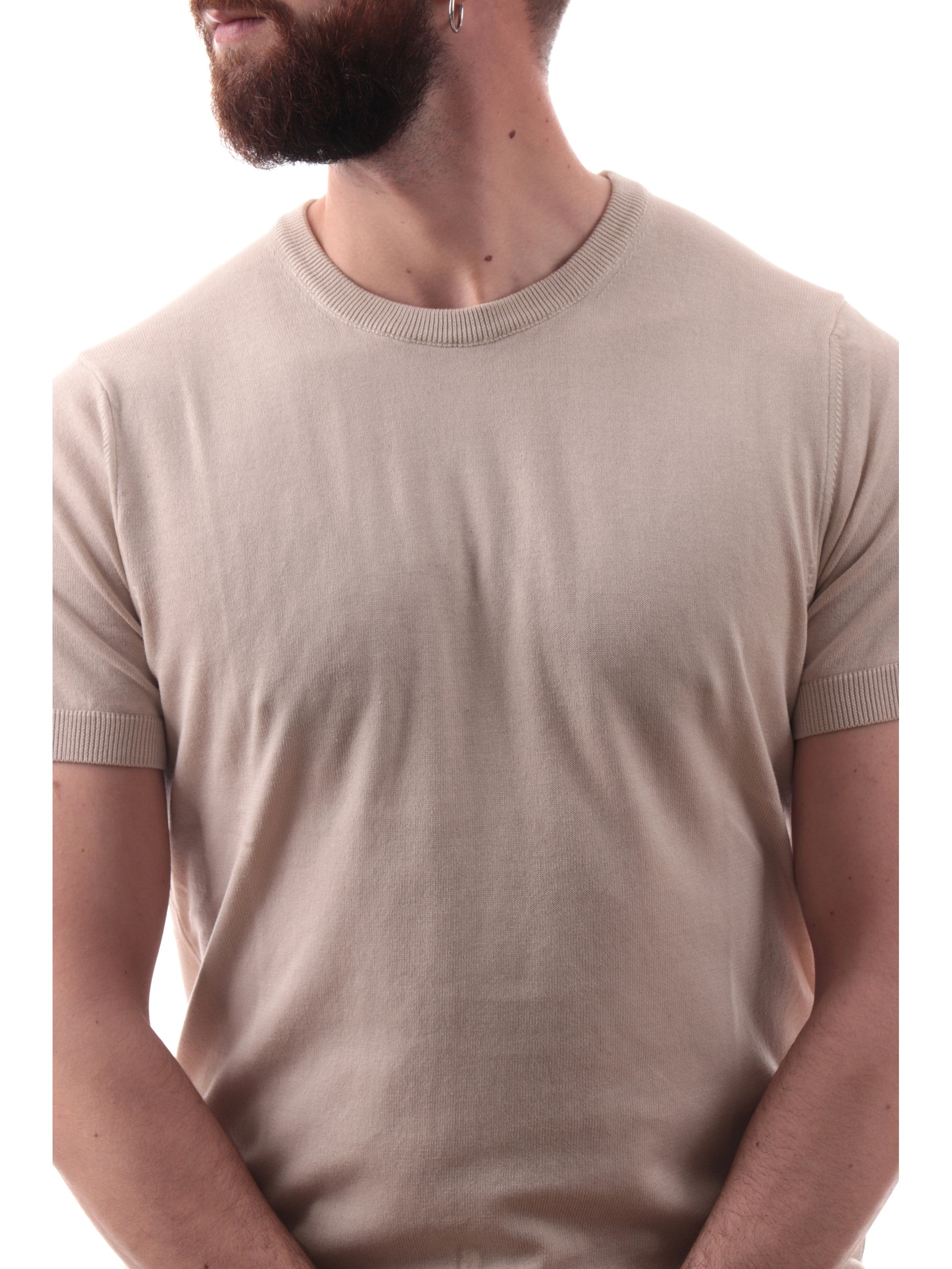 T-shirt Velk beige girocollo da uomo Made in Italy lavorata a mano RS633Y