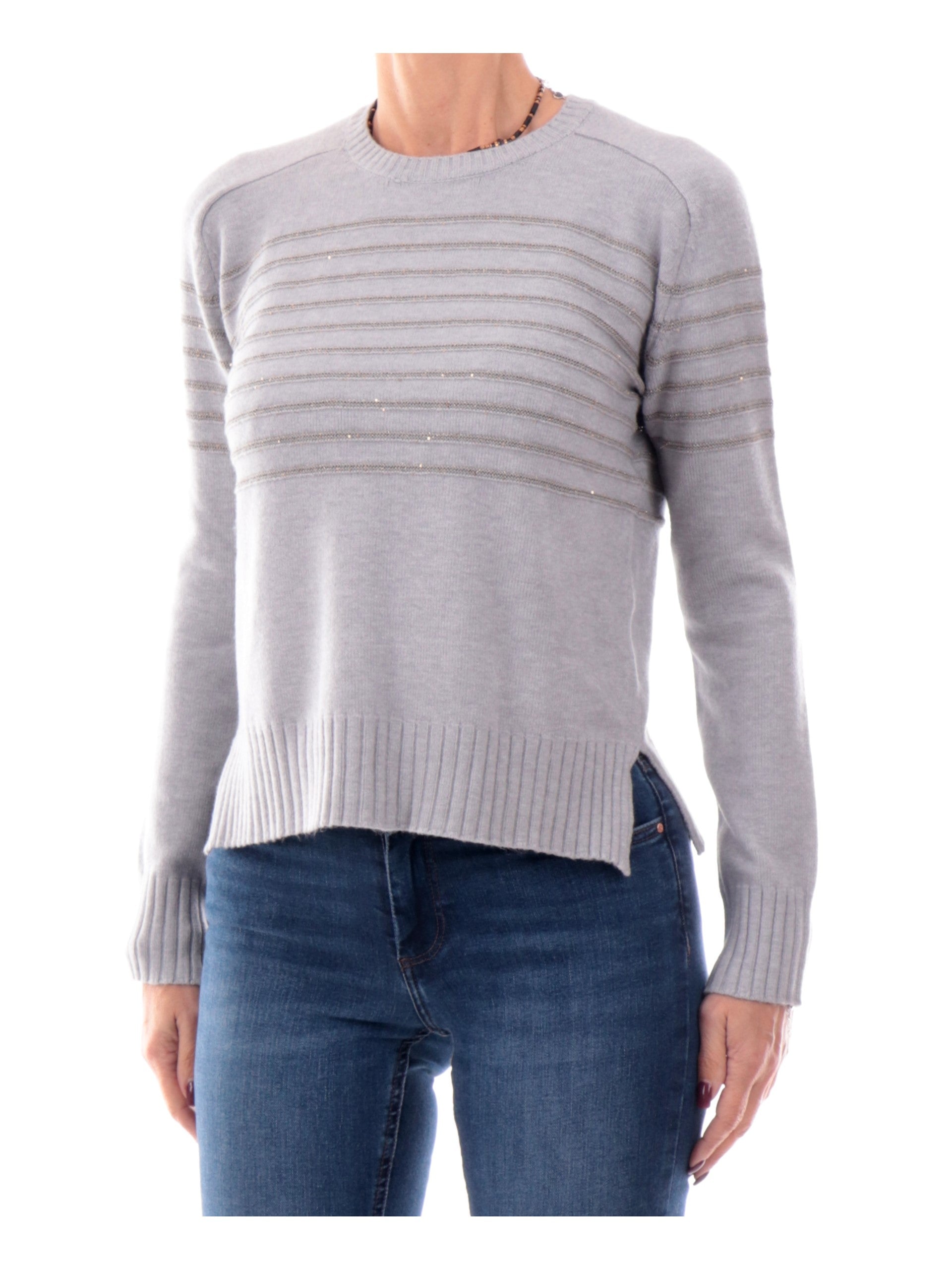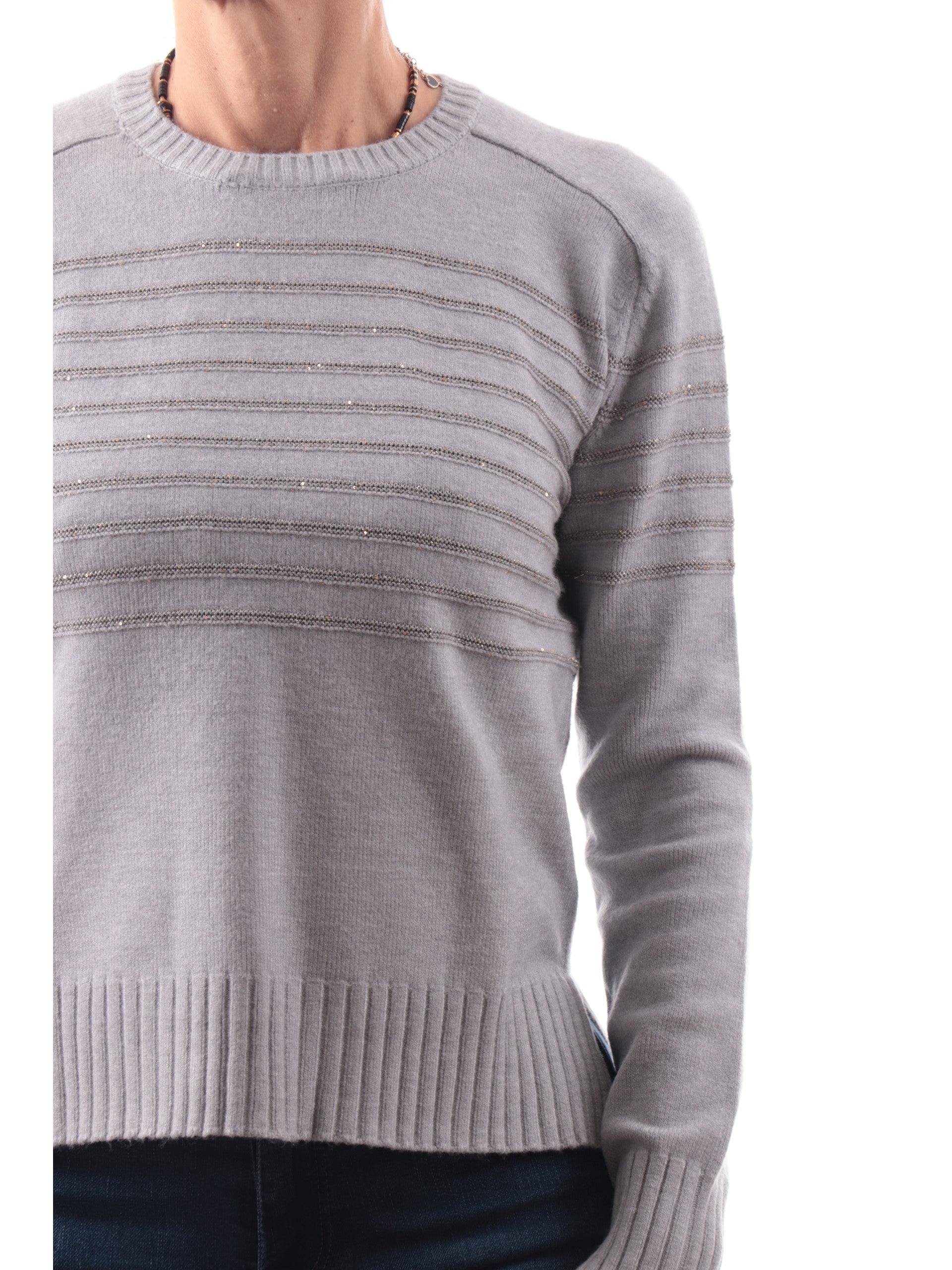 Maglione Anis White grigio da donna con righe lurex oro 255W6151015