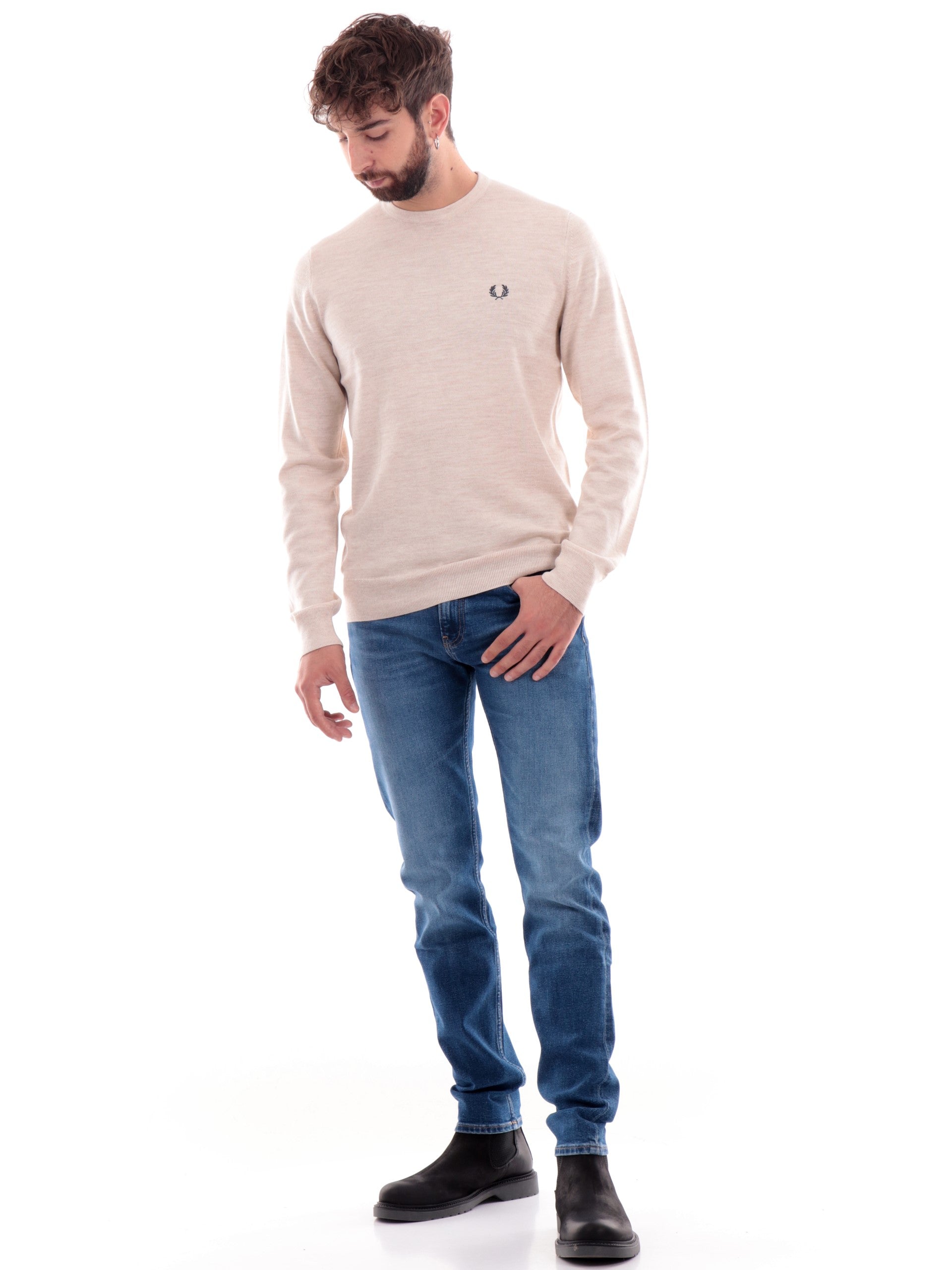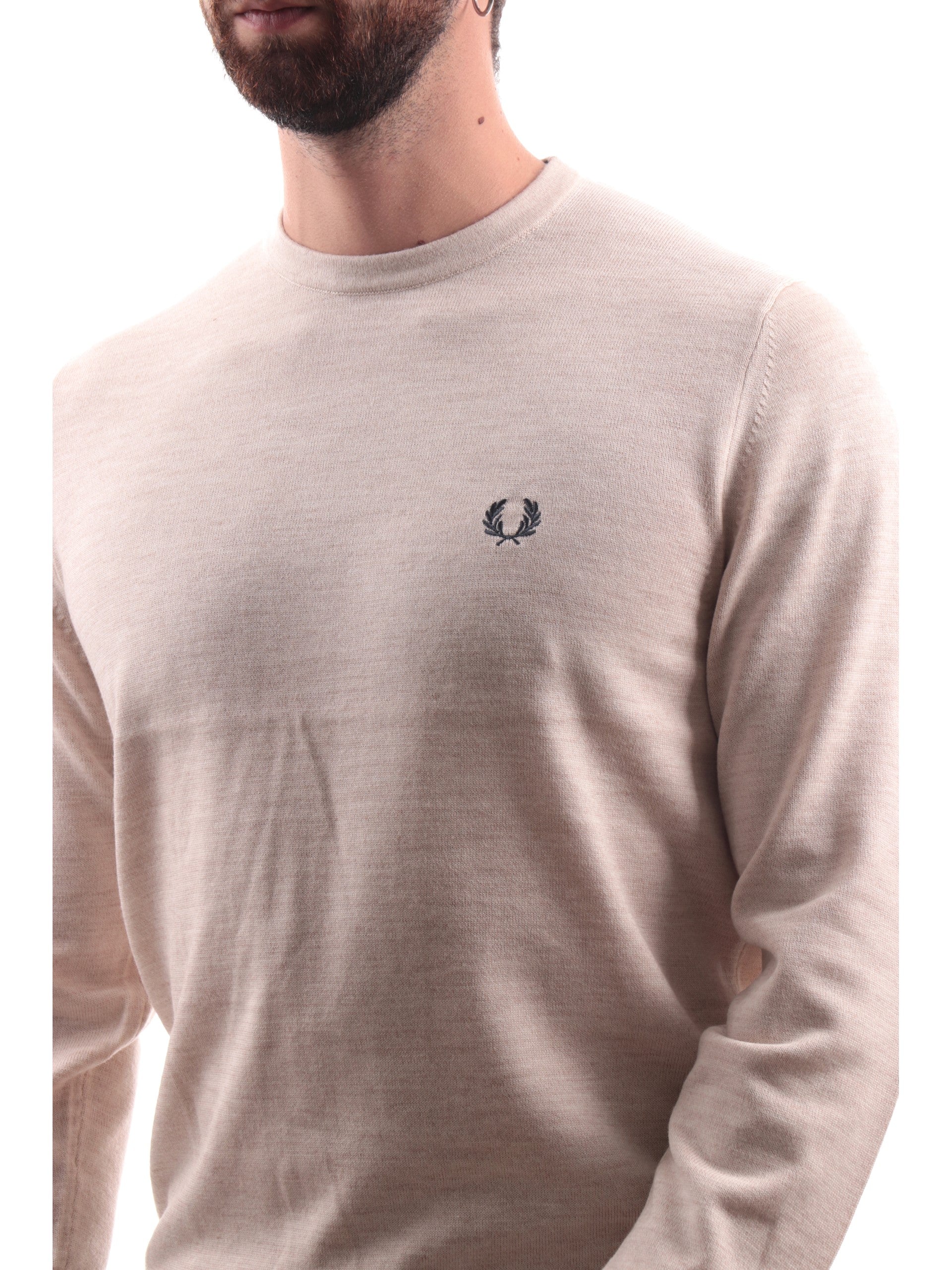 Maglione Fred Perry beige da uomo Classic Crew Neck Jumper K9601