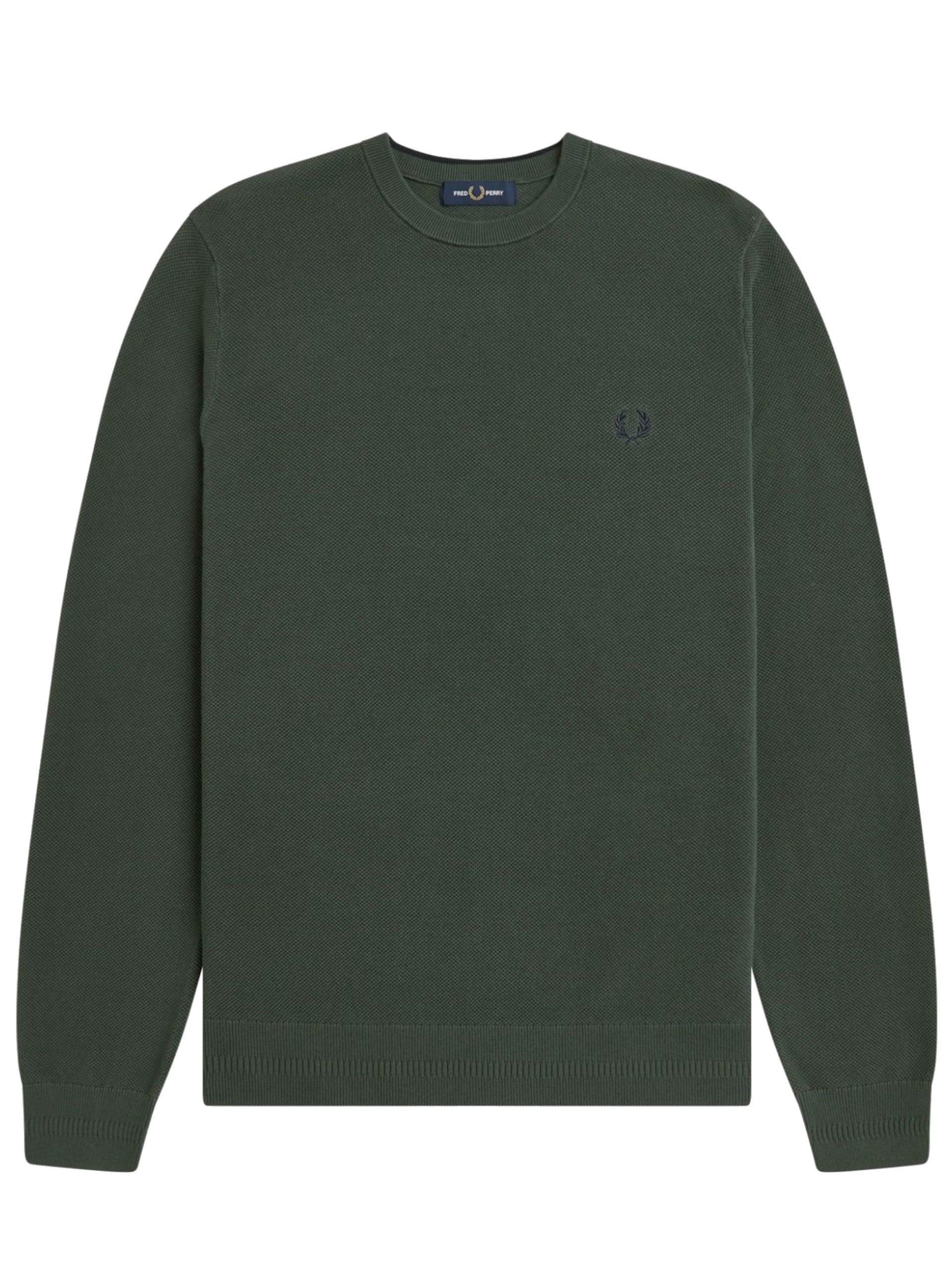 Maglione Fred Perry verde nido d'ape da uomo girocollo Pique Stitch K1309X89