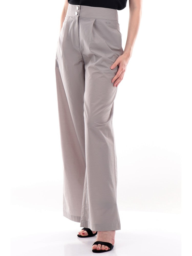 Pantalone lungo Armani Exchange A|X grigio da donna realizzato in tessuto misto cotone stampato in fantasia a righe. La linea fluida del modello 3LYP18 YN6CZ è sottolineata dalla costruzione con doppia pinces sul davanti e dalla linea dritta a palazzo. Modello a vita alta con tasche inserite nei fianchi, è rifinito con la placchetta metallica logata Armani Exchange sul fianco sinistro.
