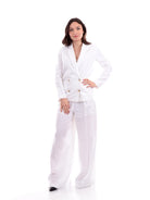 Pantaloni Armani Exchange AX bianchi da donna 3RYP36YN4KZ. Questi pantaloni AX bianchi hanno la chiusura con bottone più zip, due tasche laterali aperte, la tasca posteriore a filo lato destro, la vestibilità ampia, il fondo regolare e la composizione 100% lino.