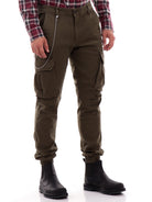 Pantaloni cargo Jack Jones verdi da uomo con catenella 12267244, realizzati in morbido cotone. Questi pantaloni Jack Jones verdi hanno la chiusura con bottone più zip, due tasche laterali aperte con taglio obliquo, due tasche posteriori con patta, polsini elasticizzati e due tasconi altezza ginocchio.
