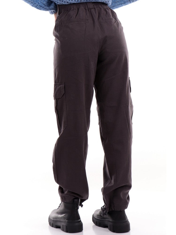 Pantaloni cargo Only grigi da donna 15307195, realizzati in 100% puro cotone. Questi pantaloni Only grigi hanno la banda elastica sul punto vita regolabile con laccetti, la chiusura con bottone logato e zip, due tasche laterali aperte, la predisposizione per indossare la cintura, due tasconi altezza ginocchio con patta e polsini regolabili con laccetti.
