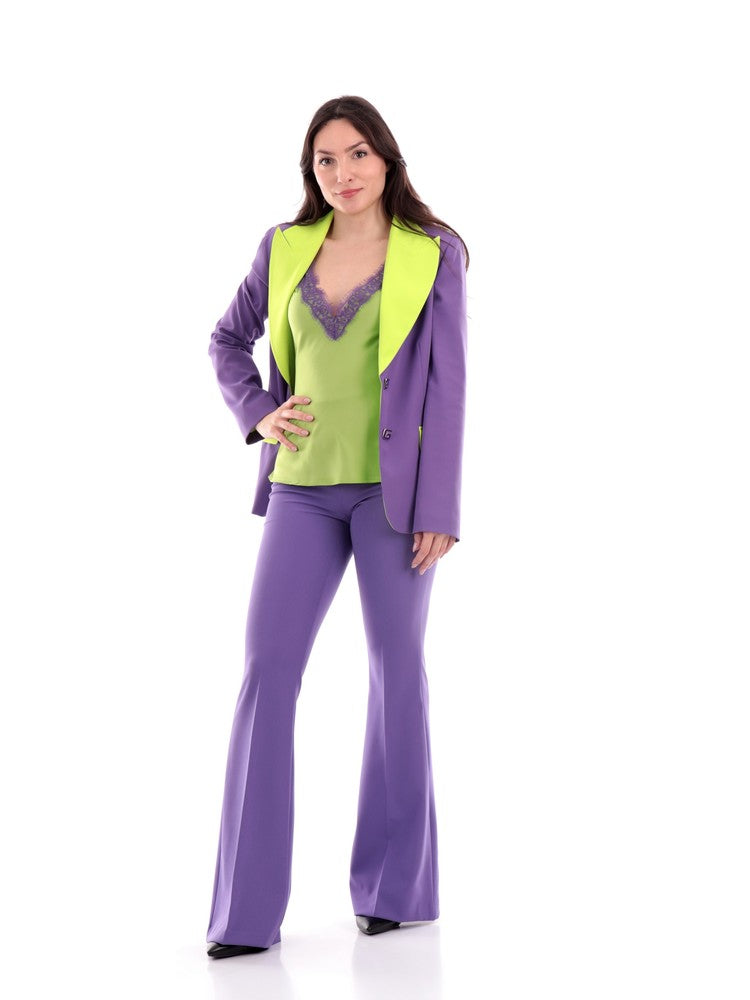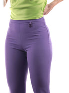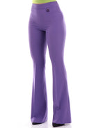 Pantaloni Gaelle viola da donna con ciondolo, modello GBDP16001, realizzati in morbidissimo tessuto a tinta unita. Questi pantaloni Gaelle viola a vita alta hanno la chiusura con zip laterale, il ciondolo logato sul punto vita e il fondo a zampa. Questo pantalone Gaelle non può assolutamente mancare nel tuo armadio!