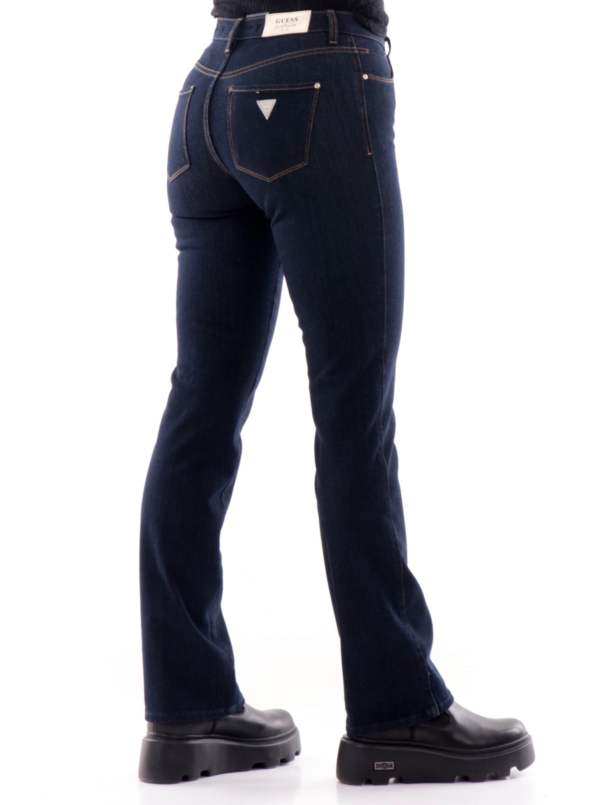 Pantaloni jeans Guess da donna sexi straight. Questi pantaloni jeans Donna straight Guess hanno la chiusura con bottone più zip, due tasche laterali di cui la destra con taschino, due tasche posteriori di cui la destra con patch del brand ricamato, la vestibilità dritta .