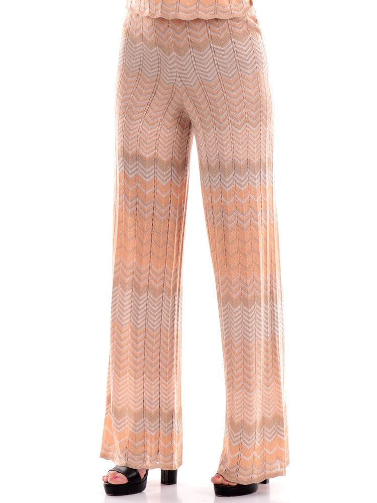 Pantaloni filo Only Beige a fantasia zig zag con fili lurex . la parte superiore è foderata con una fodera morbida per non renderli trasparenti. Il tessuto di filo dona a questi pantaloni Only fascino e morbidezza.
