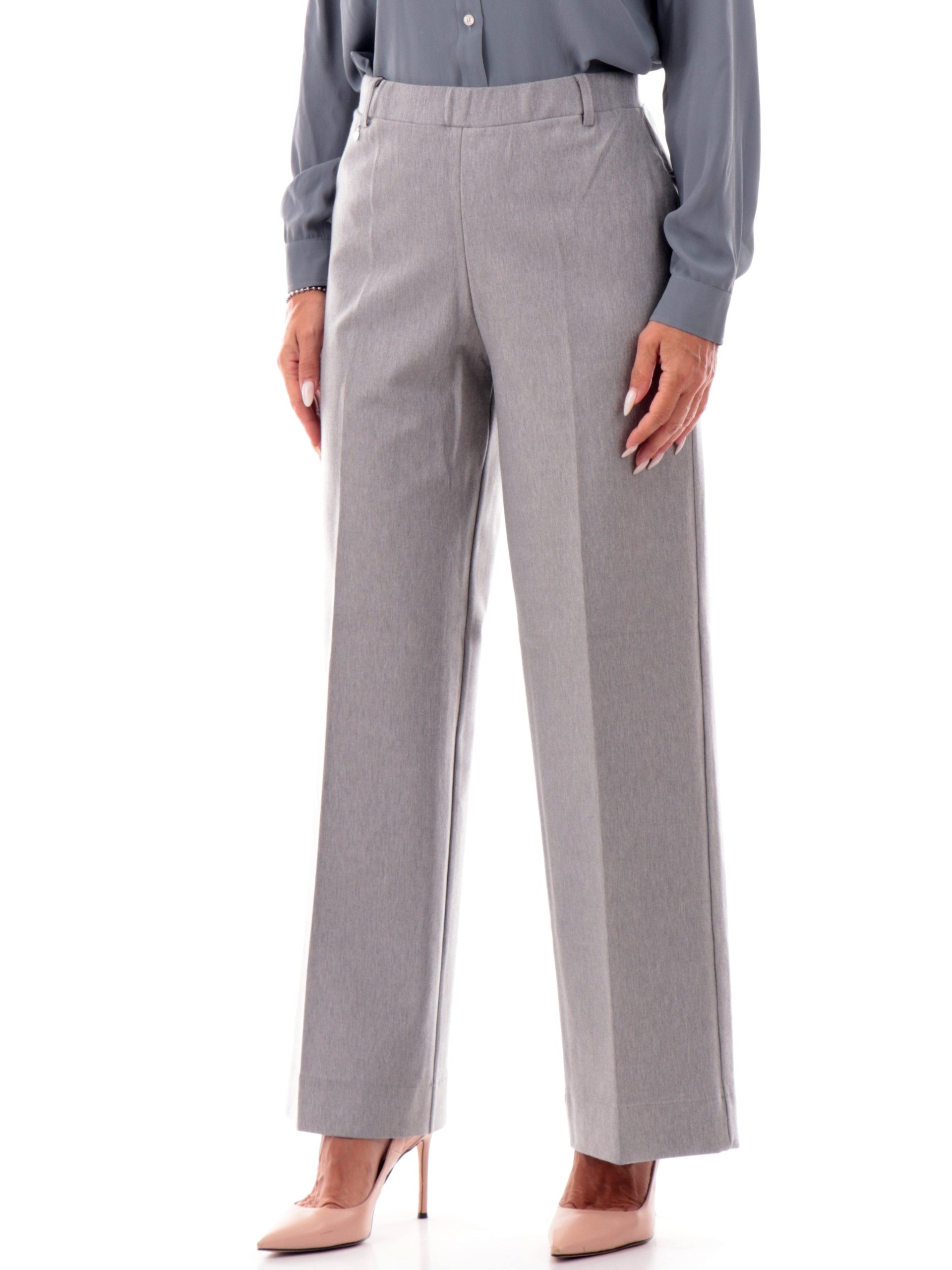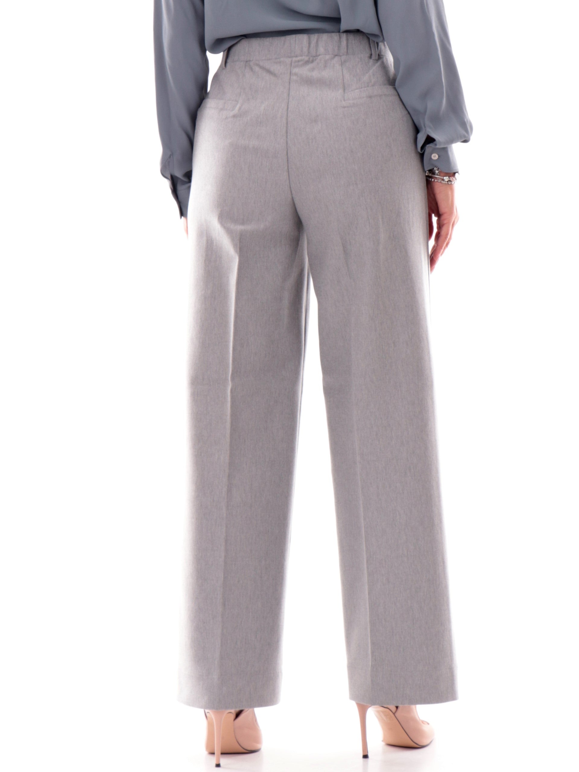 Pantaloni Ragno Palazzo grigi da donna con tasche Wide DE72PE, realizzati in viscosa. Questi pantaloni donna Ragno hanno la banda elastica sul punto vita, la predisposizione per indossare la cintrua,due tasche posteriori a filo e il ciondolo del brand applicato sul lato destro.