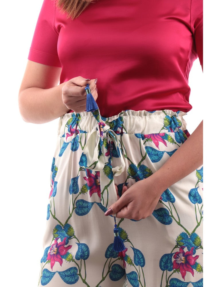 Pantalone Wu Side bianco da donna floreale 23783
