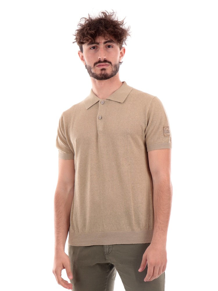 Polo Murphy&Nye beige da uomo. Questa Polo Murphy&Nye ha la chiusura con doppio bottone, il fondo regolare ed è realizzata in lino.