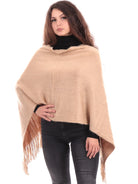Poncho Molly Bracken beige da donna con frange B187BH-BEIGE