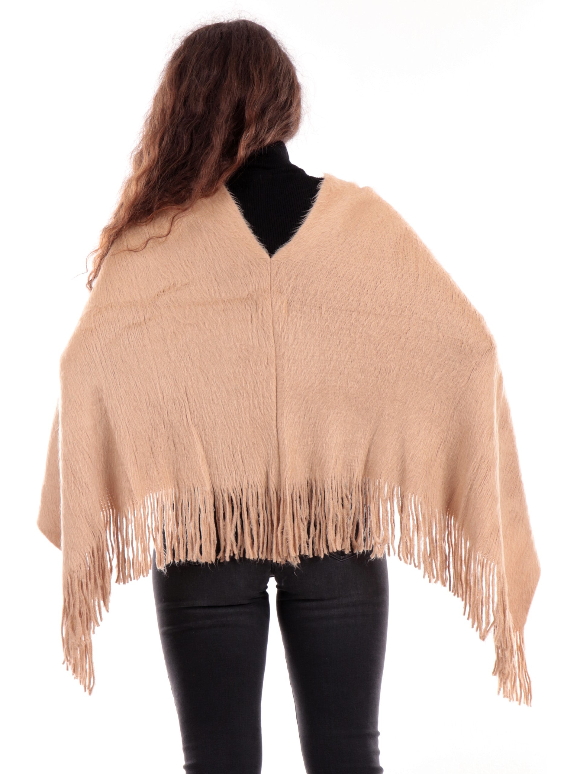 Poncho donna Beige realizzato in morbidissimo tessuto che dona a chi lo indossa una linea slanciata oltre che ad essere perfetta da indossare sia con un maglione che con un cappotto.