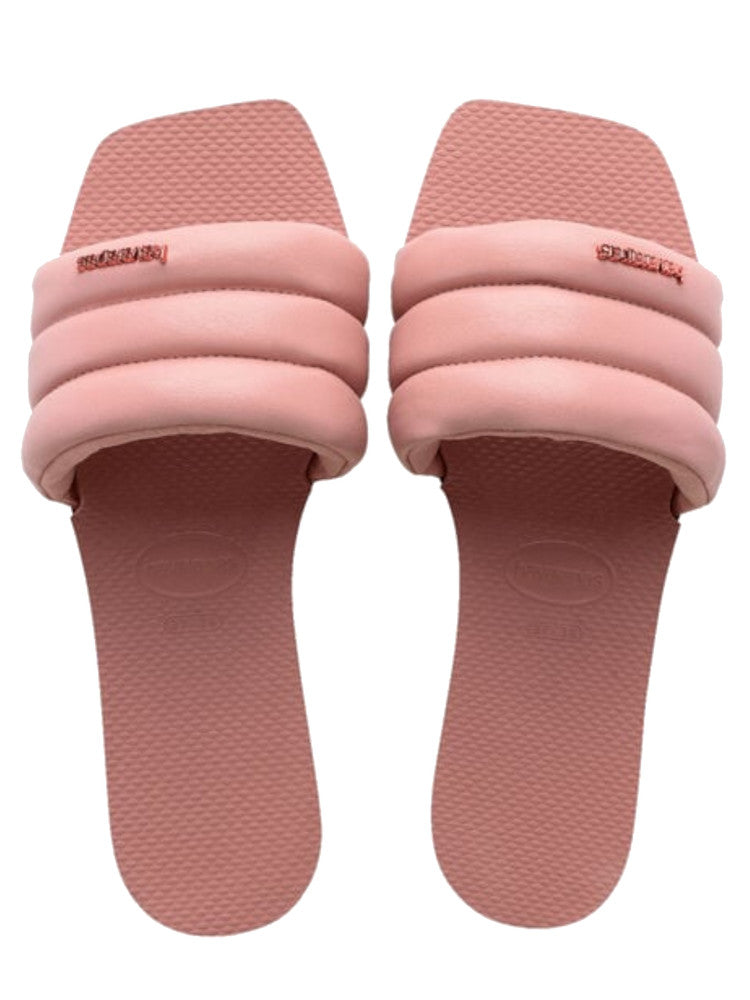 Sandali Havaianas rosa da donna con suola quadrata. La fascia di questi sandalai Havaianas è super imbottita e comoda. La palette monocolore è neutra ed perfetta per ogni occasione. L'inconfondibilemotivo a grana di riso sulla suola interna dona notevole comfort e li rende perfetti anche per la città
